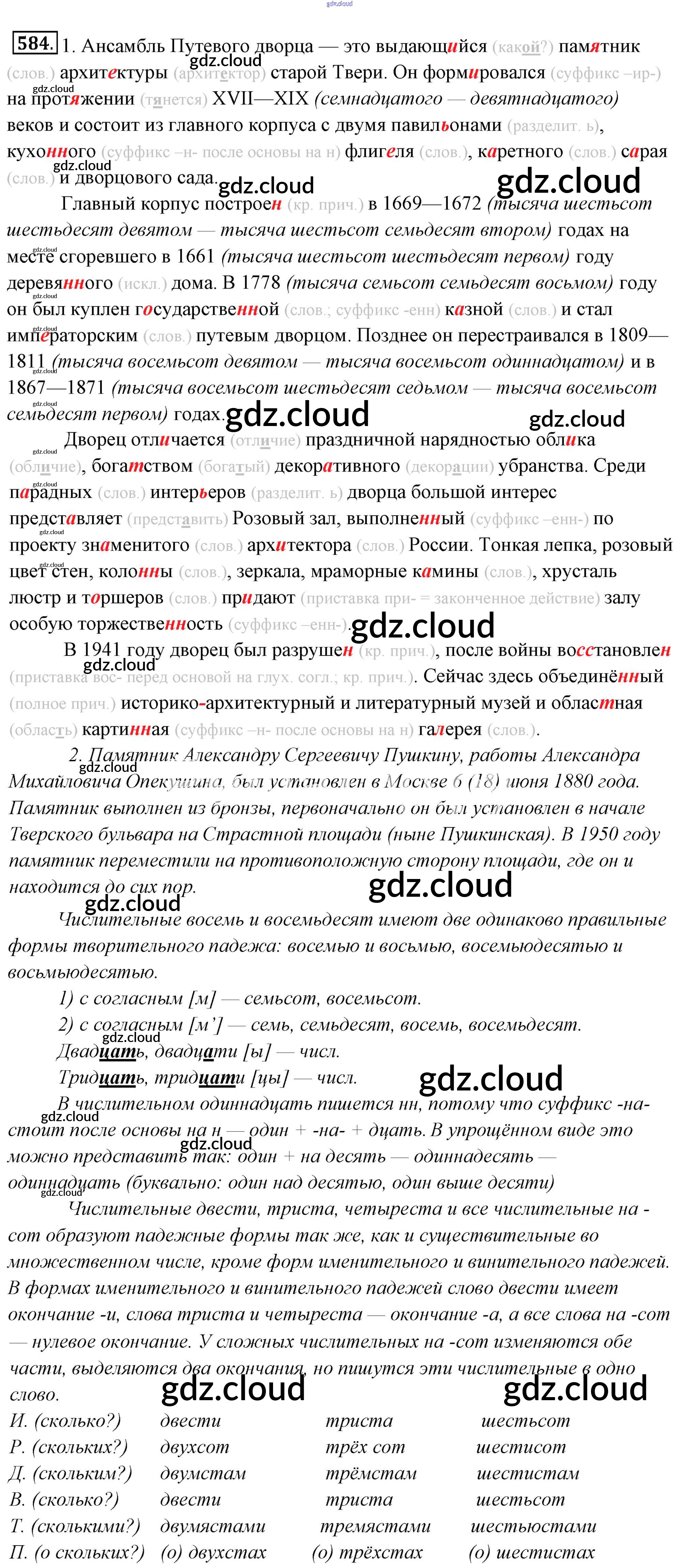 Ответ на задание 584 Учебник Русский язык за 6 (шестой) класс Львова, Львов 2013 Часть 1, 2 ФГОС онлайн и без номера телефона.