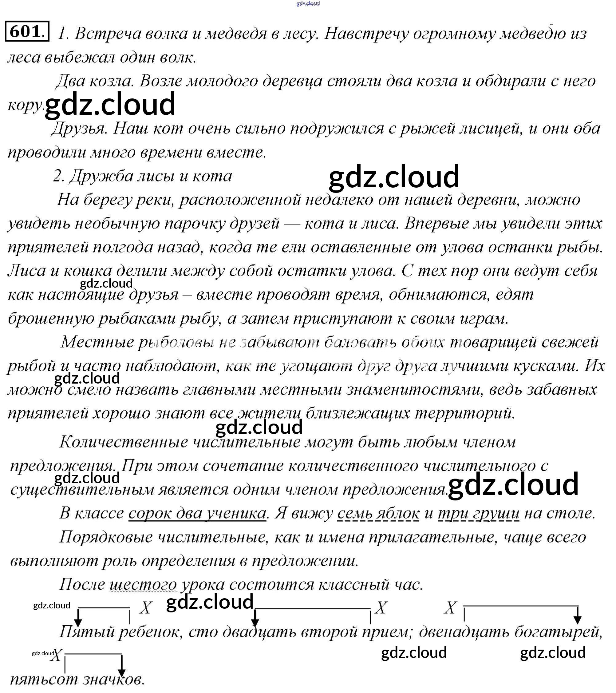 Ответ на задание 601 Учебник Русский язык за 6 (шестой) класс Львова, Львов 2013 Часть 1, 2 ФГОС онлайн и без номера телефона.