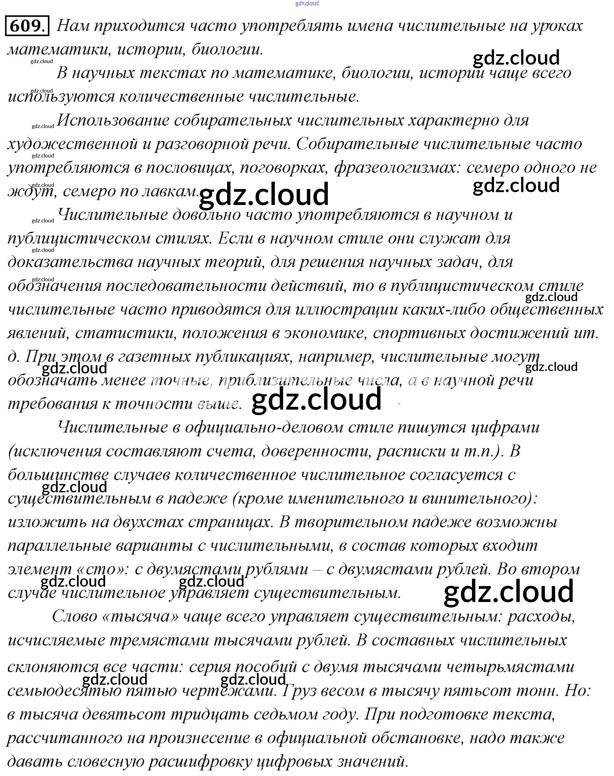 Ответ на задание 609 Учебник Русский язык за 6 (шестой) класс Львова, Львов 2013 Часть 1, 2 ФГОС онлайн и без номера телефона.