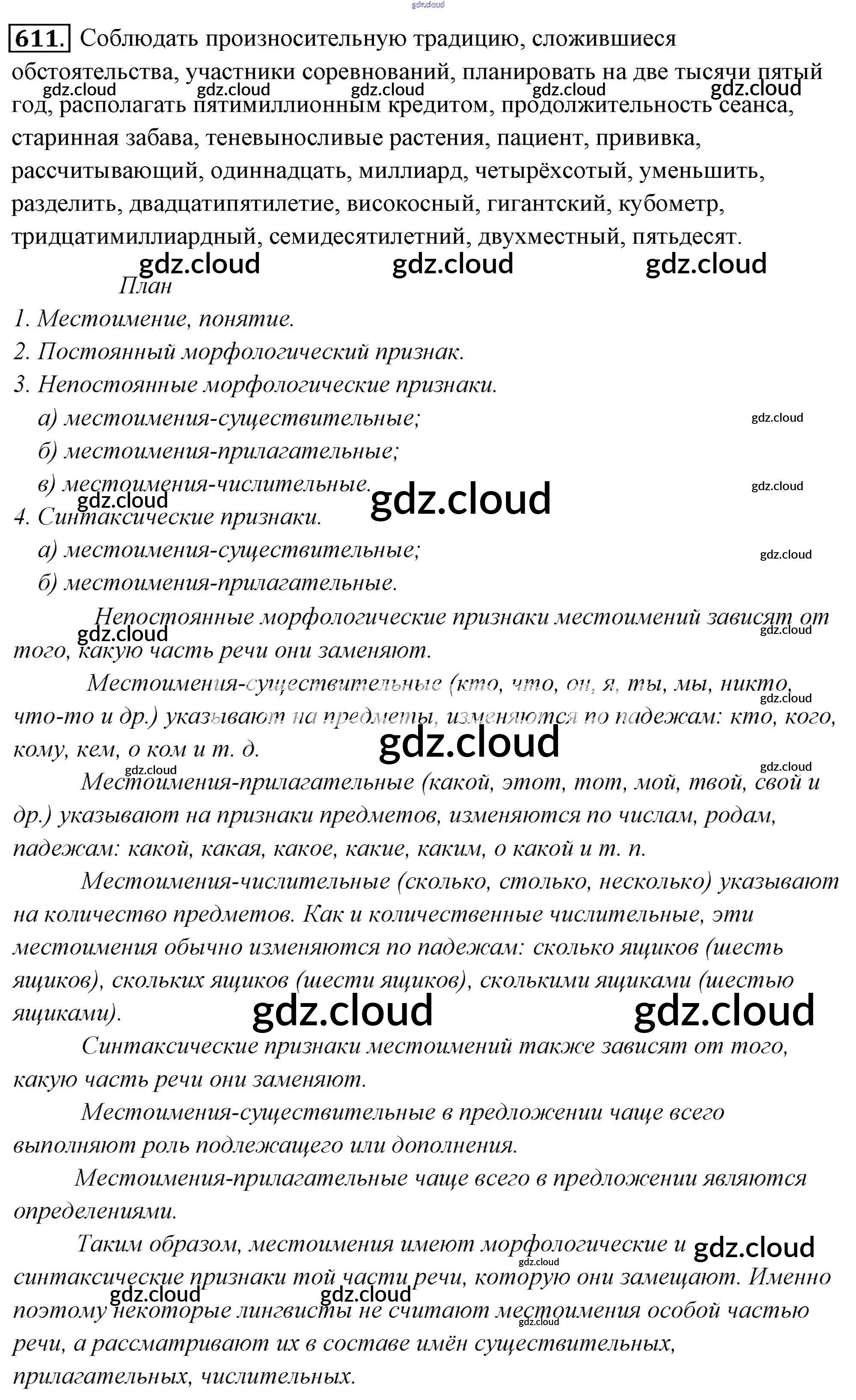 Ответ на задание 611 Учебник Русский язык за 6 (шестой) класс Львова, Львов 2013 Часть 1, 2 ФГОС онлайн и без номера телефона.