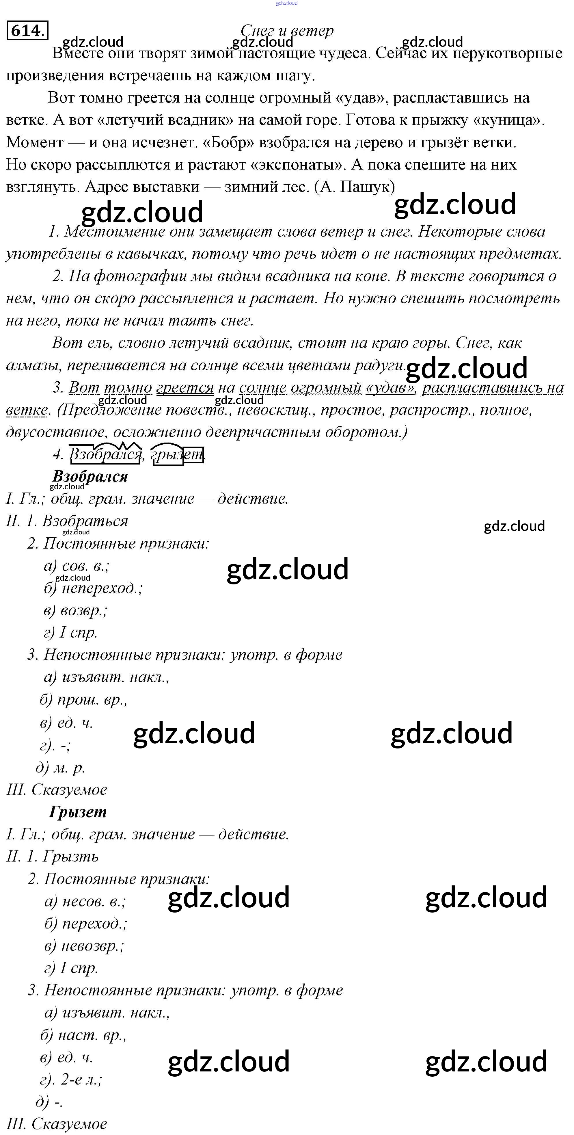 Ответ на задание 614 Учебник Русский язык за 6 (шестой) класс Львова, Львов 2013 Часть 1, 2 ФГОС онлайн и без номера телефона.