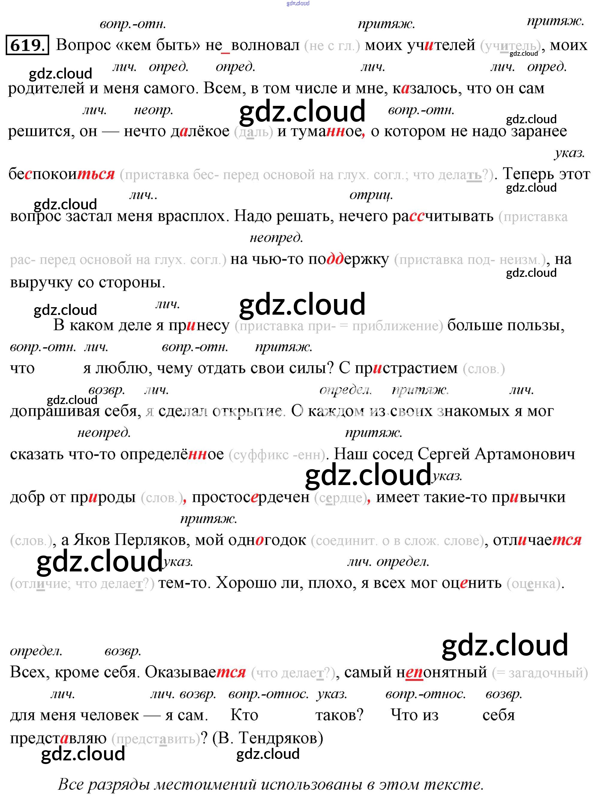 Ответ на задание 619 Учебник Русский язык за 6 (шестой) класс Львова, Львов 2013 Часть 1, 2 ФГОС онлайн и без номера телефона.