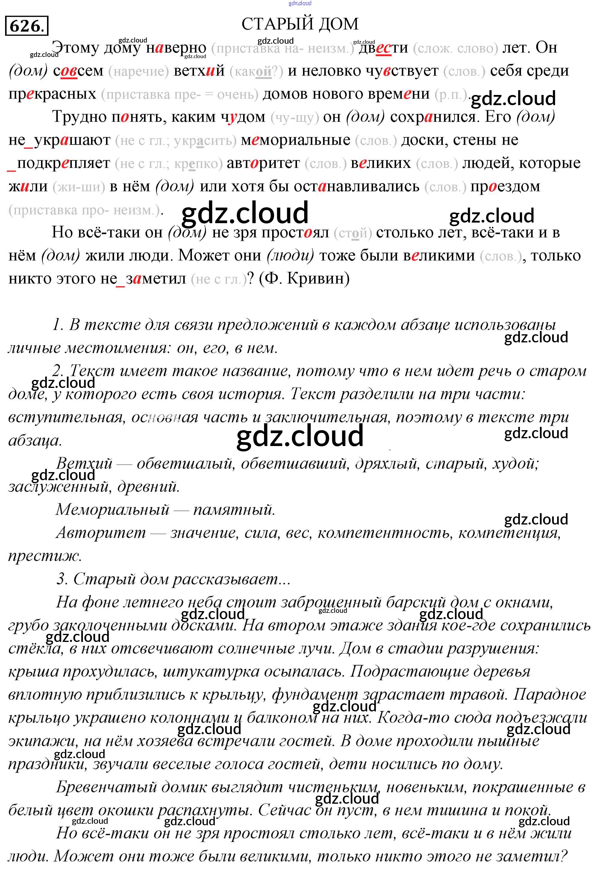Ответ на задание 626 Учебник Русский язык за 6 (шестой) класс Львова, Львов 2013 Часть 1, 2 ФГОС онлайн и без номера телефона.