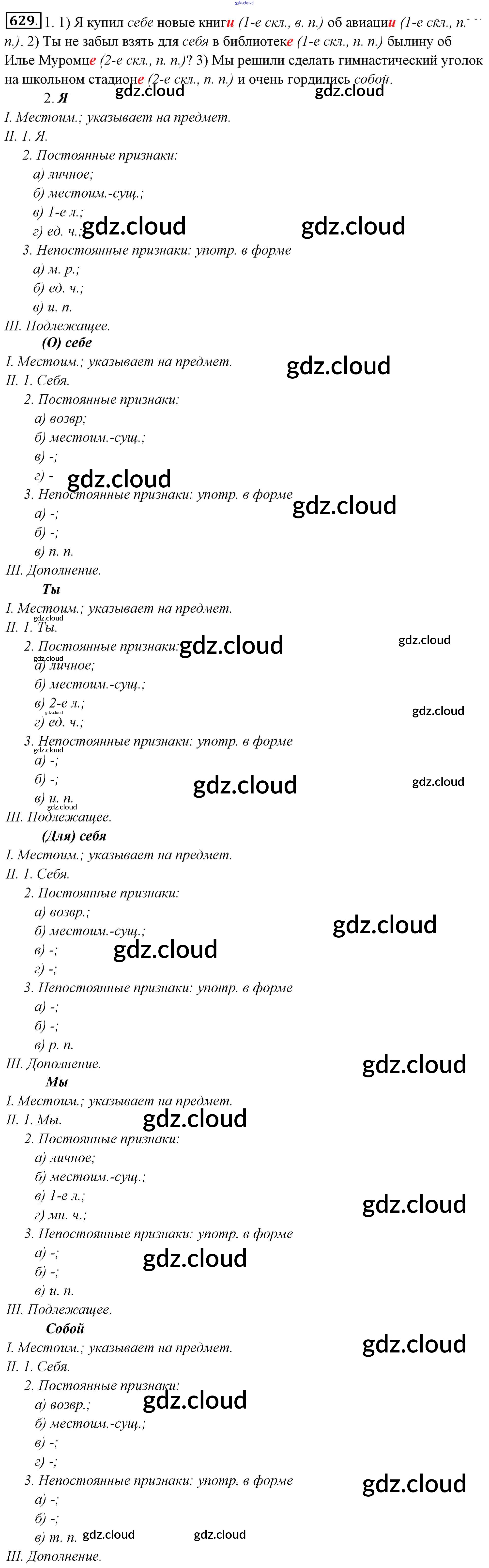 Ответ на задание 629 Учебник Русский язык за 6 (шестой) класс Львова, Львов 2013 Часть 1, 2 ФГОС онлайн и без номера телефона.