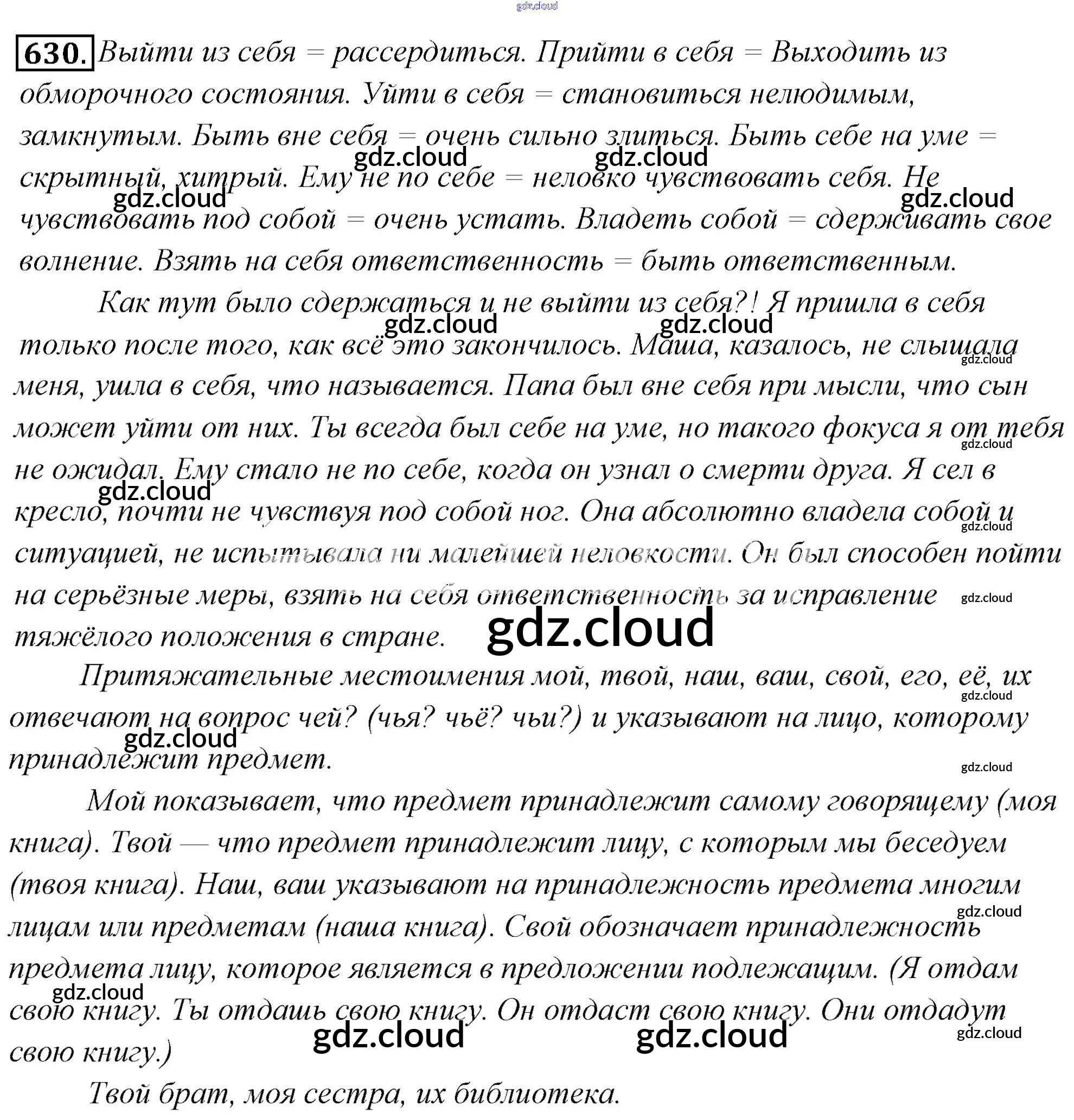 Ответ на задание 630 Учебник Русский язык за 6 (шестой) класс Львова, Львов 2013 Часть 1, 2 ФГОС онлайн и без номера телефона.