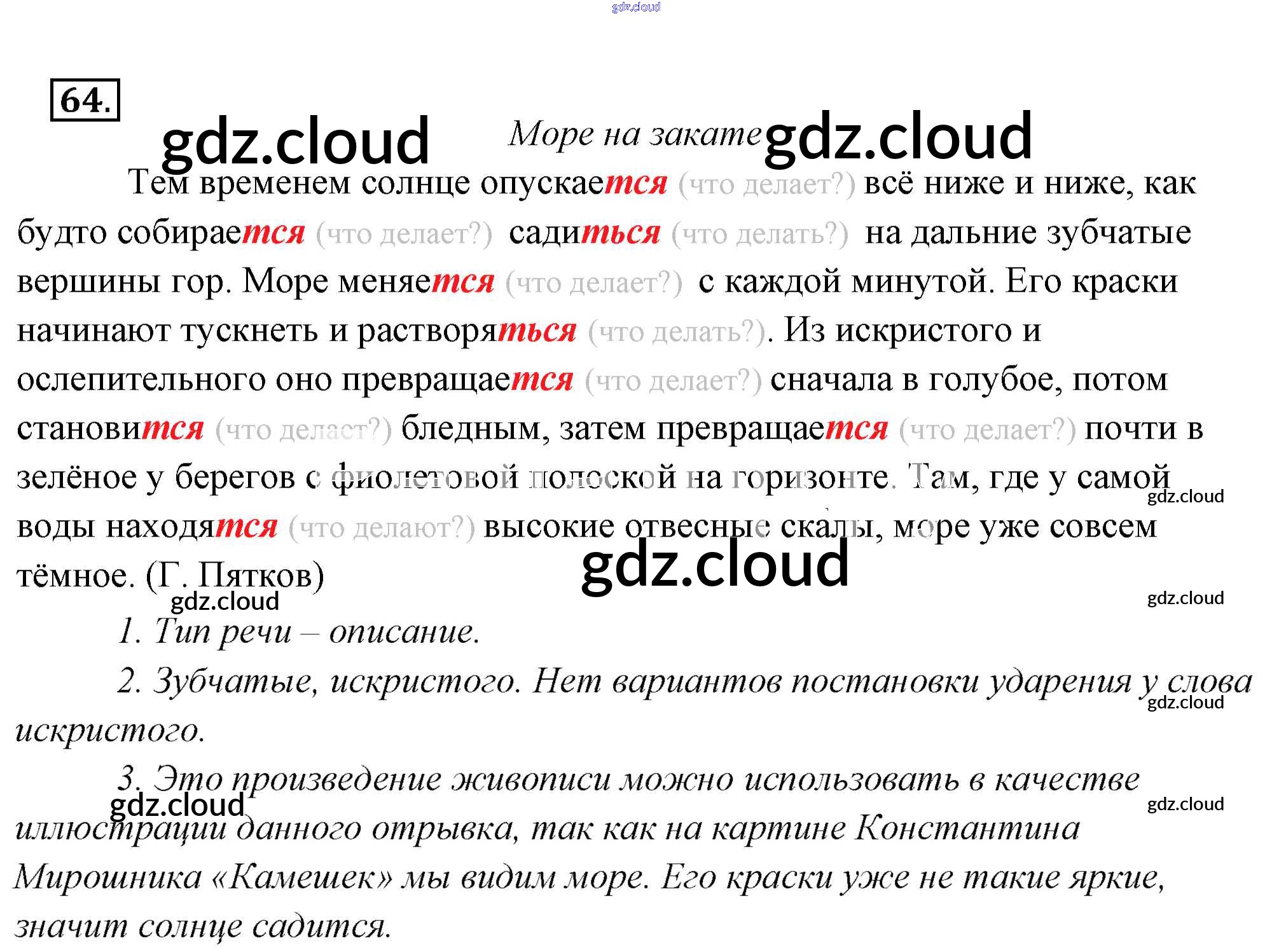 Ответ на задание 64 Учебник Русский язык за 6 (шестой) класс Львова, Львов 2013 Часть 1, 2 ФГОС онлайн и без номера телефона.