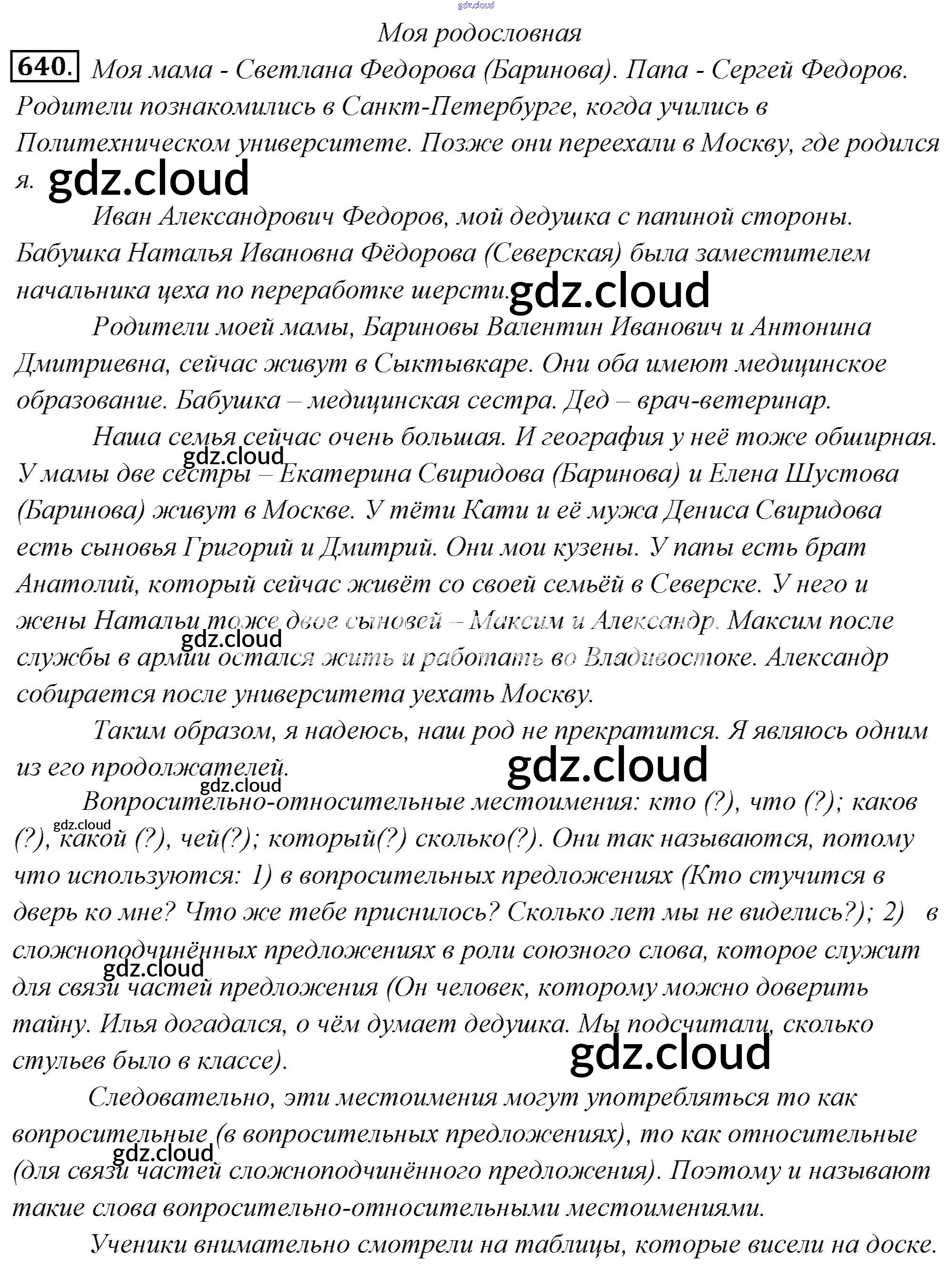 Ответ на задание 640 Учебник Русский язык за 6 (шестой) класс Львова, Львов 2013 Часть 1, 2 ФГОС онлайн и без номера телефона.
