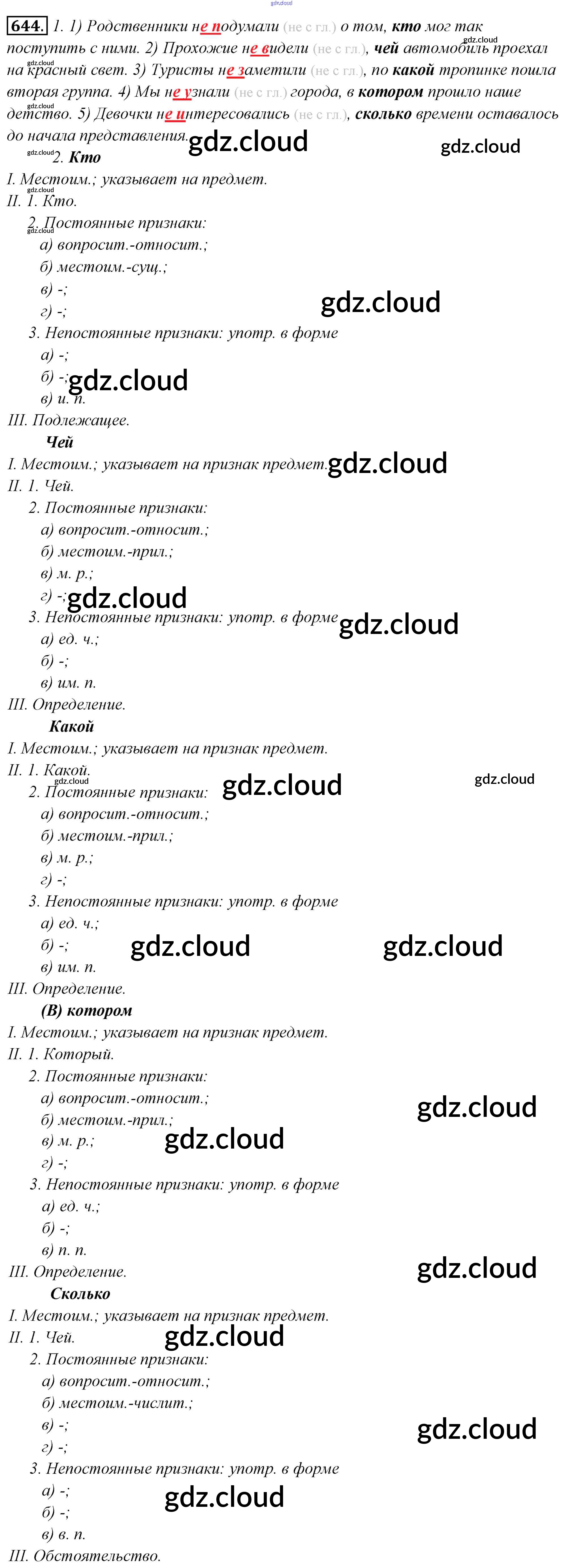 Ответ на задание 644 Учебник Русский язык за 6 (шестой) класс Львова, Львов 2013 Часть 1, 2 ФГОС онлайн и без номера телефона.