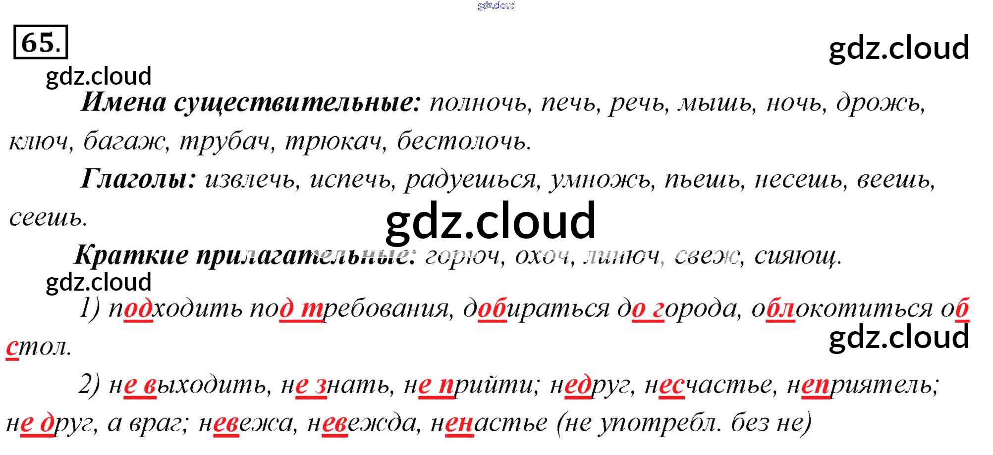 Ответ на задание 65 Учебник Русский язык за 6 (шестой) класс Львова, Львов 2013 Часть 1, 2 ФГОС онлайн и без номера телефона.
