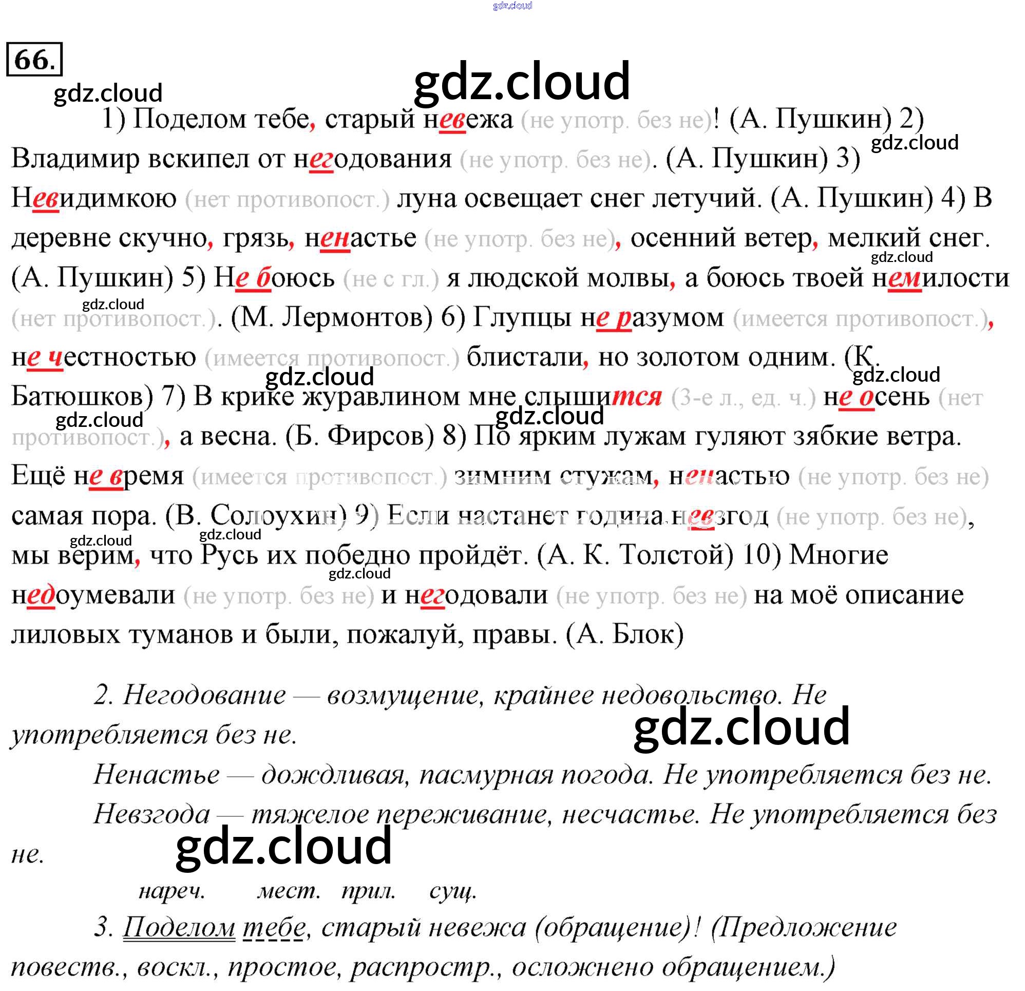 Ответ на задание 66 Учебник Русский язык за 6 (шестой) класс Львова, Львов 2013 Часть 1, 2 ФГОС онлайн и без номера телефона.