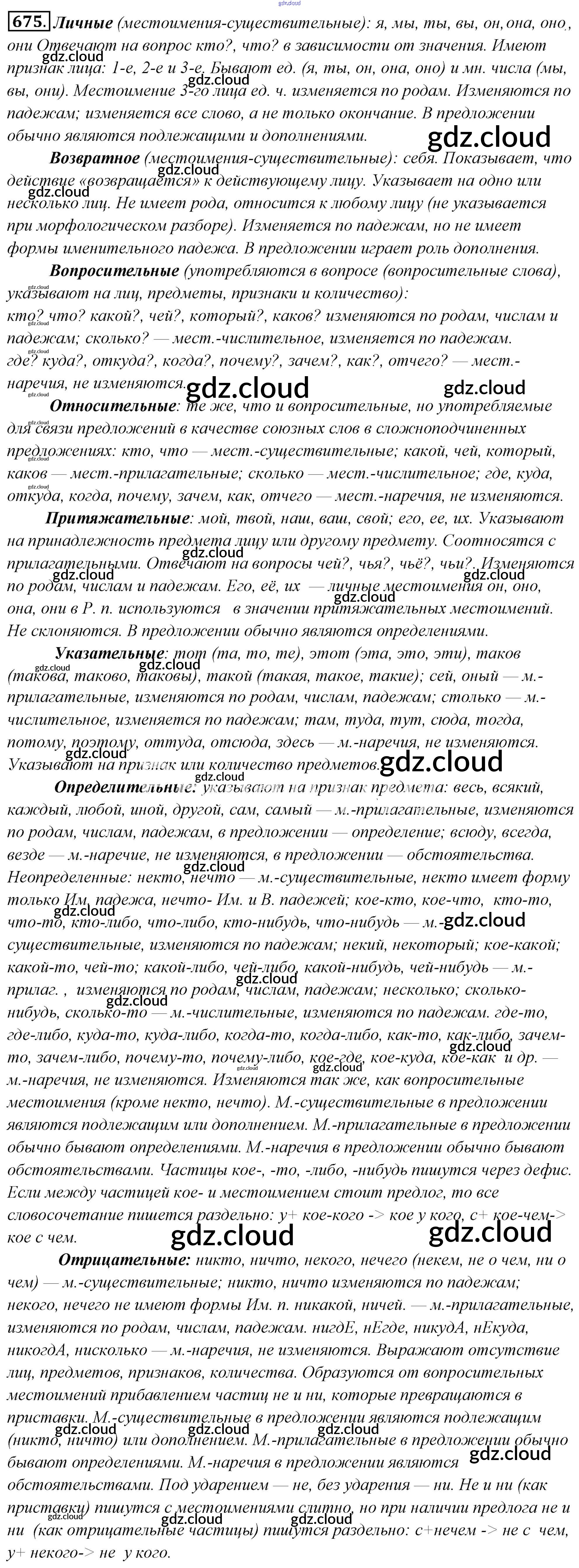 Ответ на задание 675 Учебник Русский язык за 6 (шестой) класс Львова, Львов 2013 Часть 1, 2 ФГОС онлайн и без номера телефона.