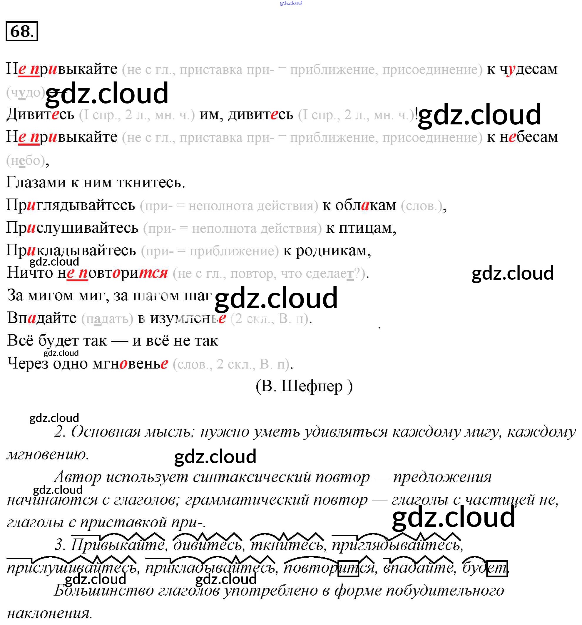 Ответ на задание 68 Учебник Русский язык за 6 (шестой) класс Львова, Львов 2013 Часть 1, 2 ФГОС онлайн и без номера телефона.