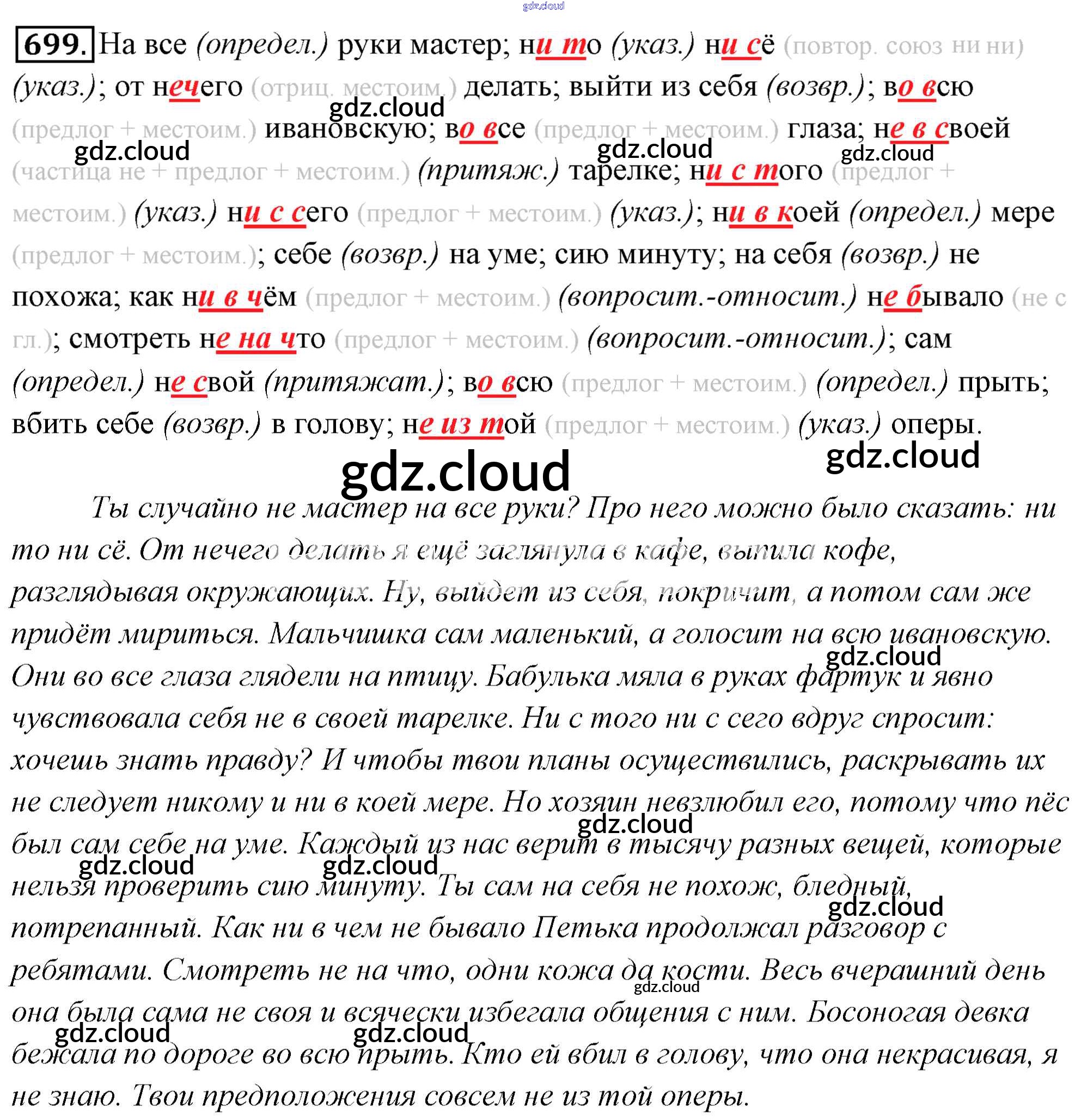 Ответ на задание 699 Учебник Русский язык за 6 (шестой) класс Львова, Львов 2013 Часть 1, 2 ФГОС онлайн и без номера телефона.