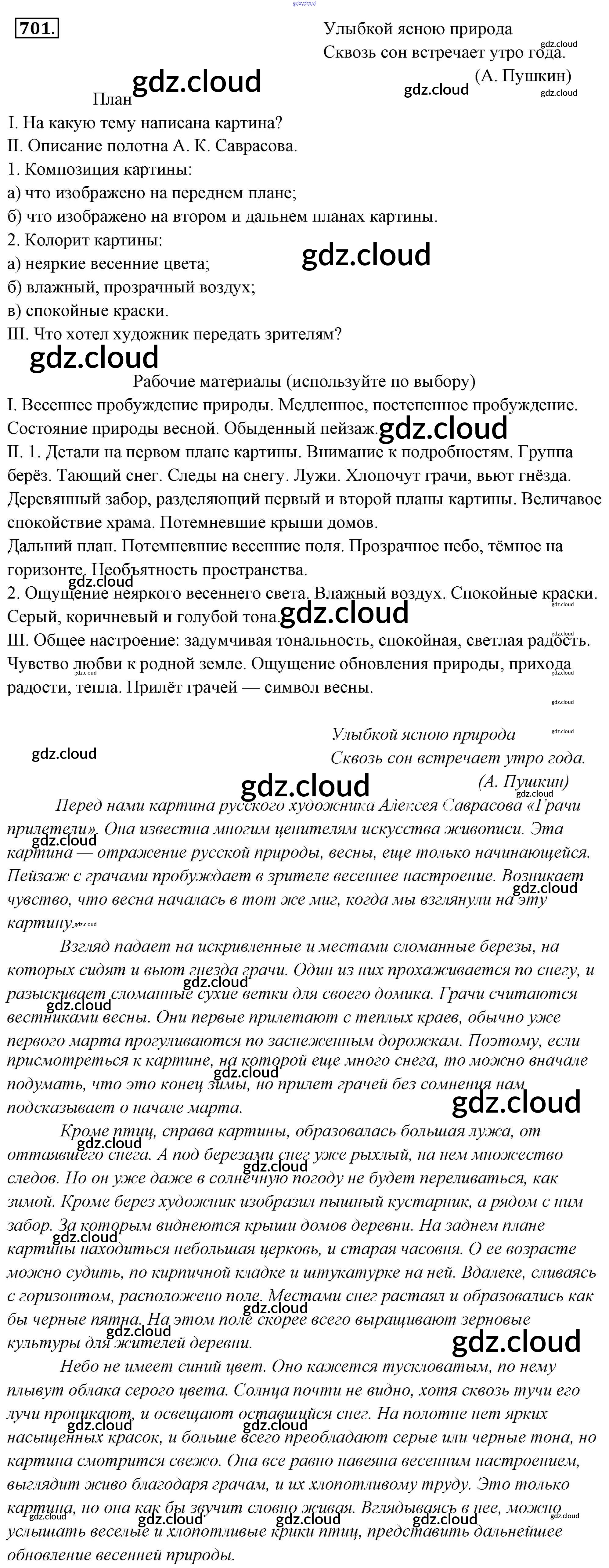 Ответ на задание 701 Учебник Русский язык за 6 (шестой) класс Львова, Львов 2013 Часть 1, 2 ФГОС онлайн и без номера телефона.