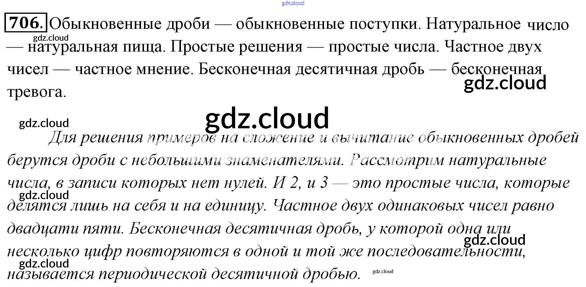 Ответ на задание 706 Учебник Русский язык за 6 (шестой) класс Львова, Львов 2013 Часть 1, 2 ФГОС онлайн и без номера телефона.