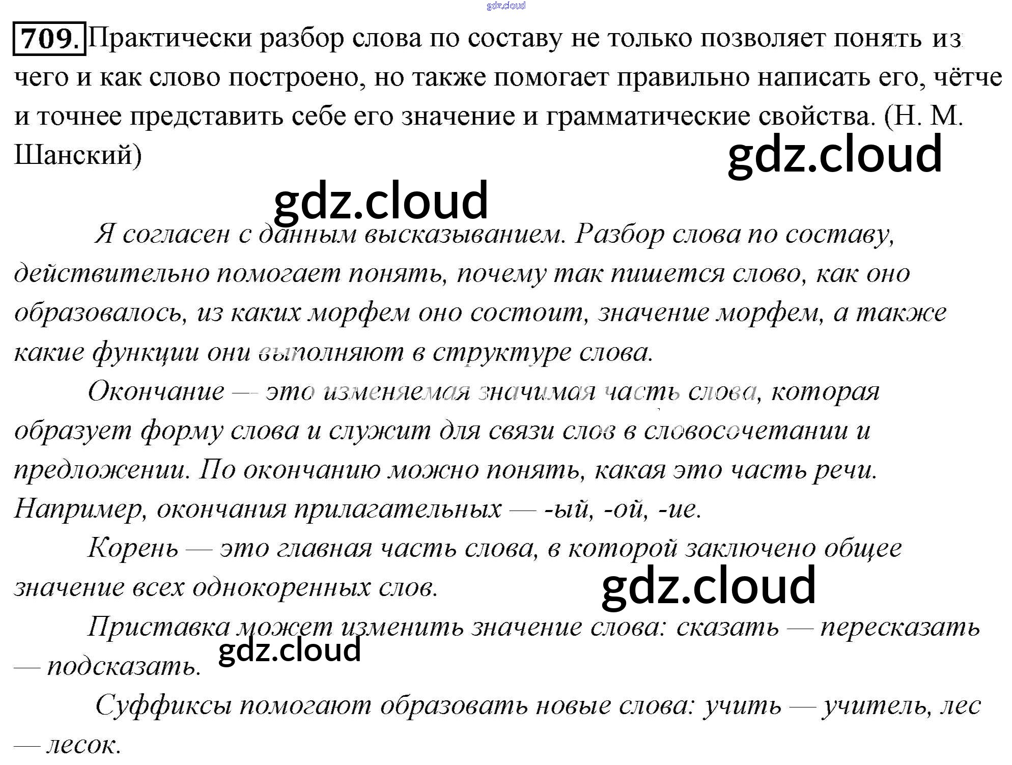 Ответ на задание 709 Учебник Русский язык за 6 (шестой) класс Львова, Львов 2013 Часть 1, 2 ФГОС онлайн и без номера телефона.