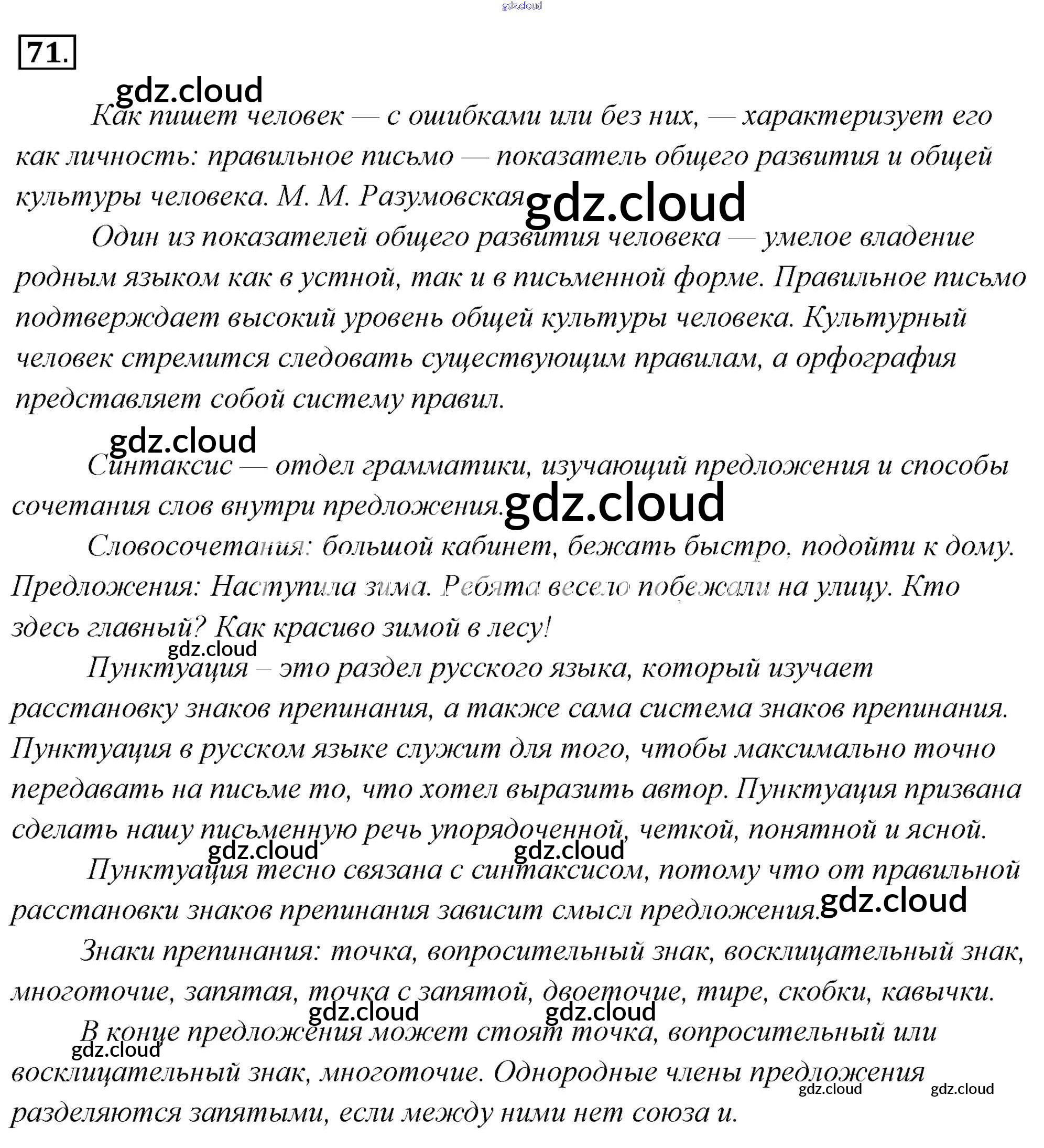 Ответ на задание 71 Учебник Русский язык за 6 (шестой) класс Львова, Львов 2013 Часть 1, 2 ФГОС онлайн и без номера телефона.