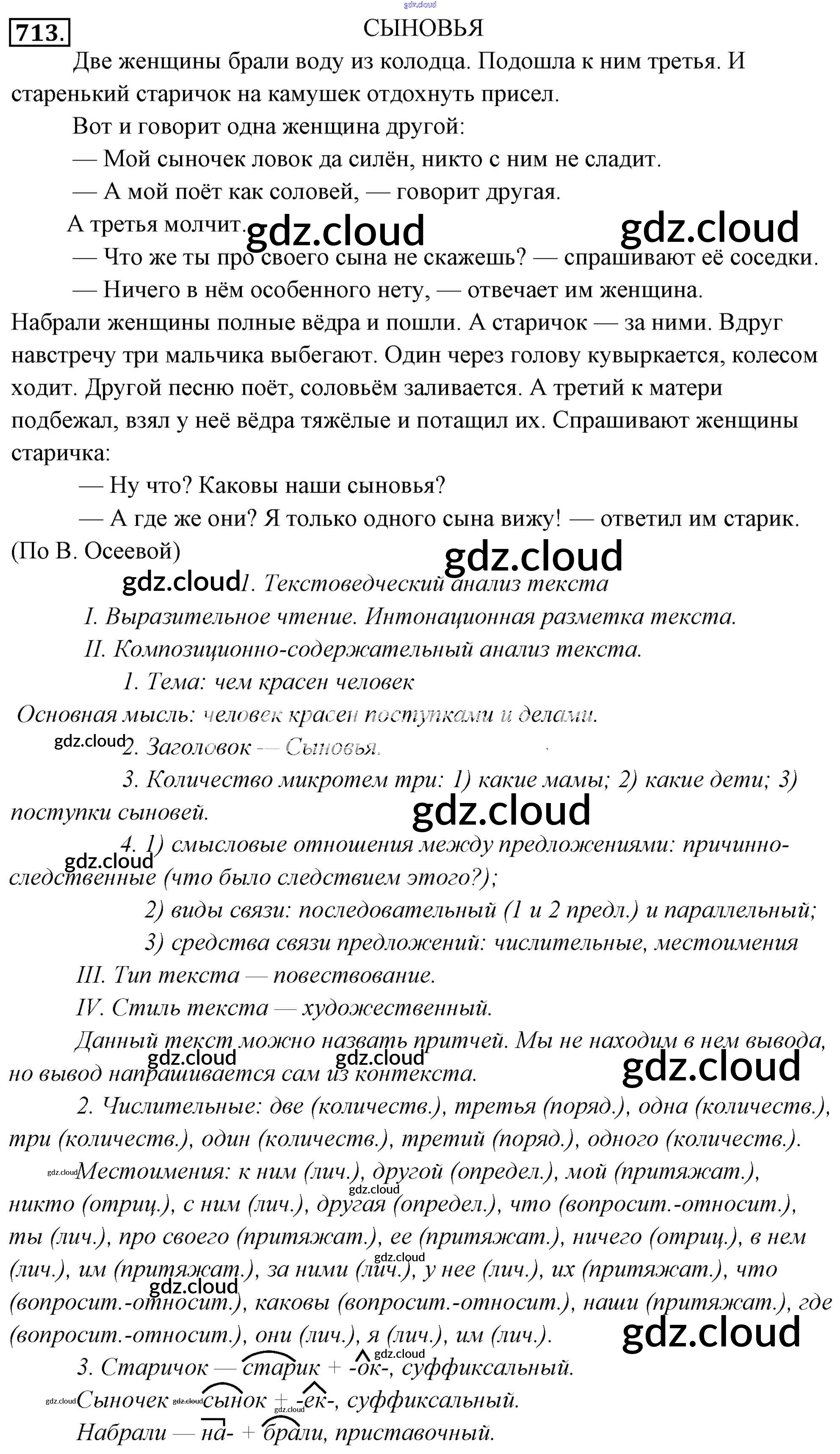 Ответ на задание 713 Учебник Русский язык за 6 (шестой) класс Львова, Львов 2013 Часть 1, 2 ФГОС онлайн и без номера телефона.