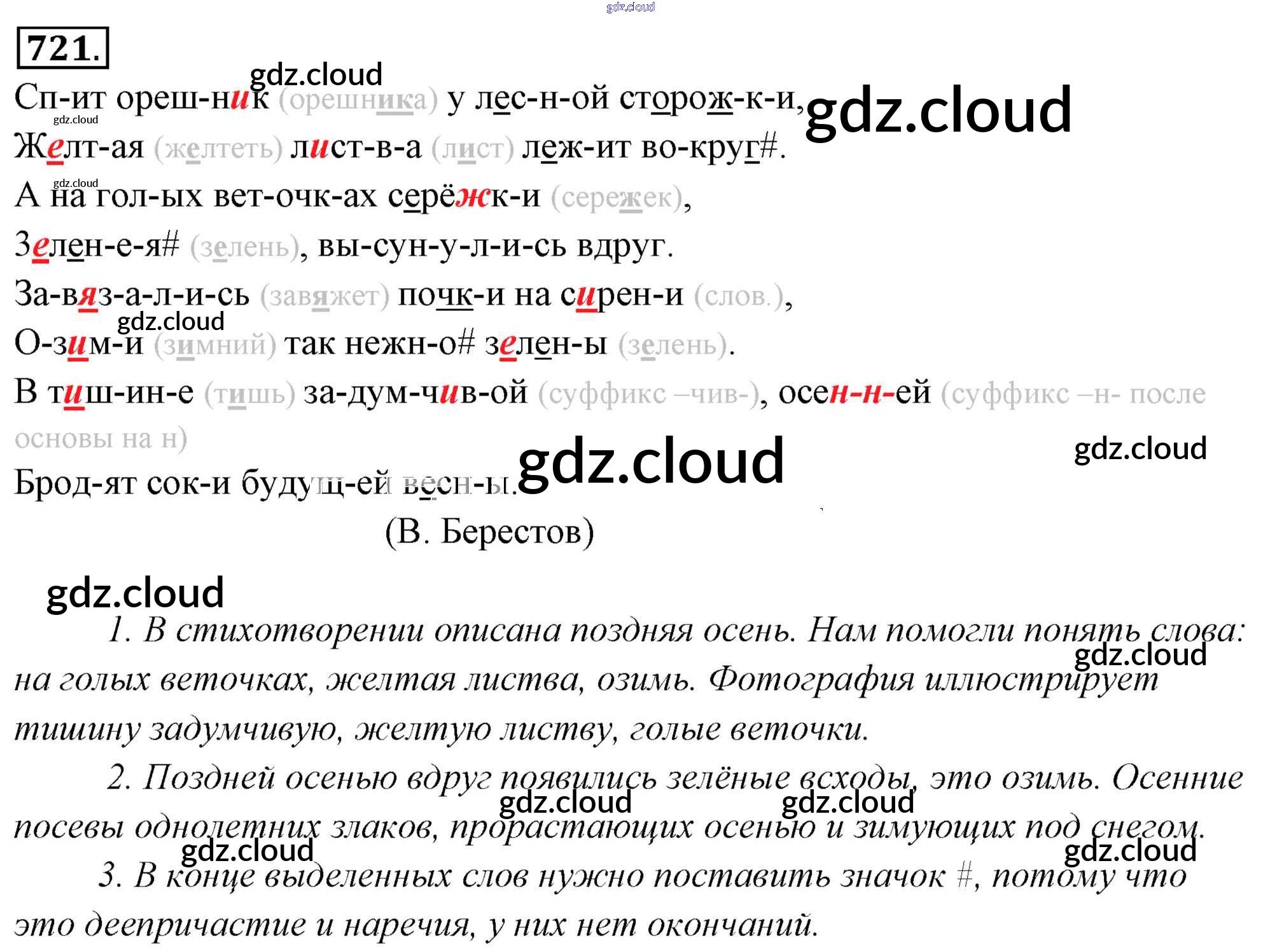 Ответ на задание 721 Учебник Русский язык за 6 (шестой) класс Львова, Львов 2013 Часть 1, 2 ФГОС онлайн и без номера телефона.