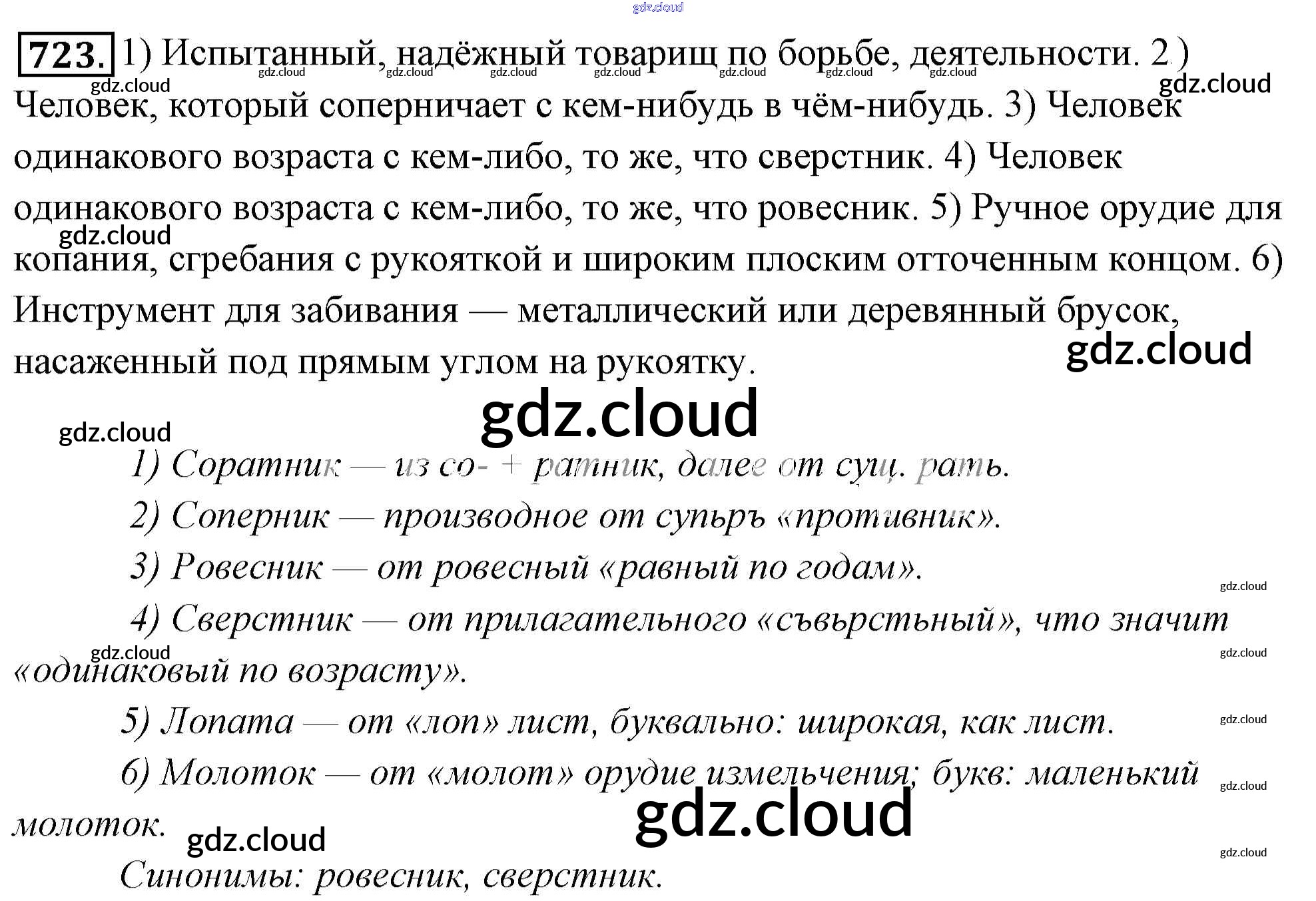 Ответ на задание 723 Учебник Русский язык за 6 (шестой) класс Львова, Львов 2013 Часть 1, 2 ФГОС онлайн и без номера телефона.