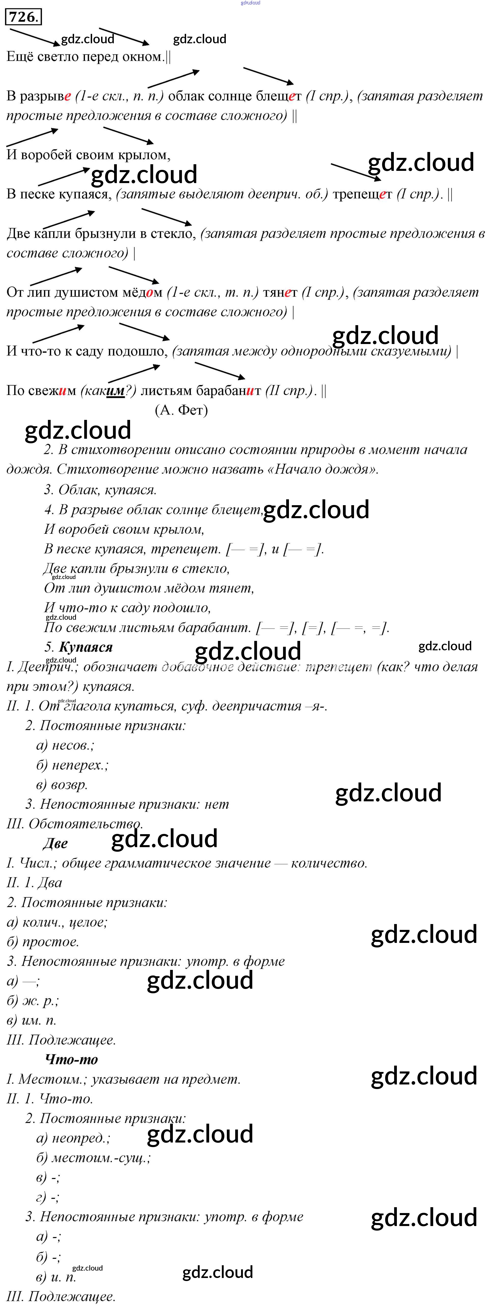 Ответ на задание 726 Учебник Русский язык за 6 (шестой) класс Львова, Львов 2013 Часть 1, 2 ФГОС онлайн и без номера телефона.