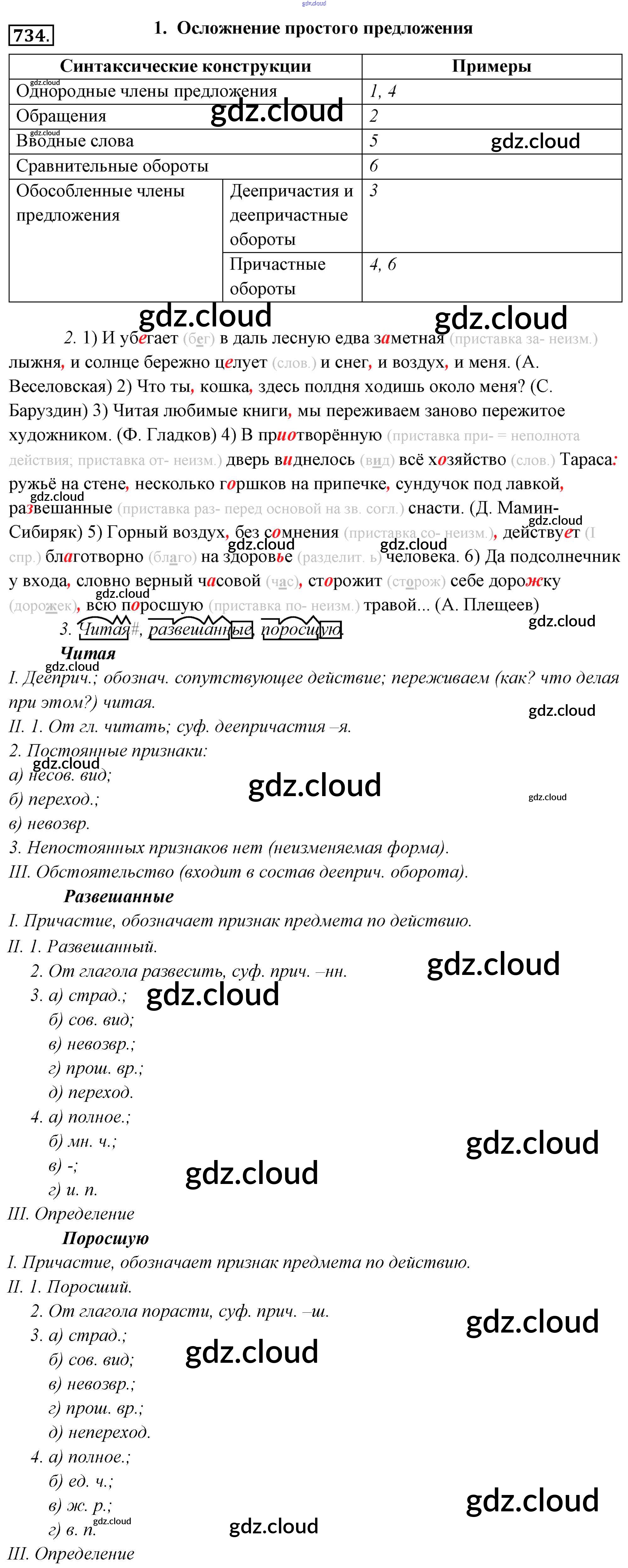 Ответ на задание 734 Учебник Русский язык за 6 (шестой) класс Львова, Львов 2013 Часть 1, 2 ФГОС онлайн и без номера телефона.