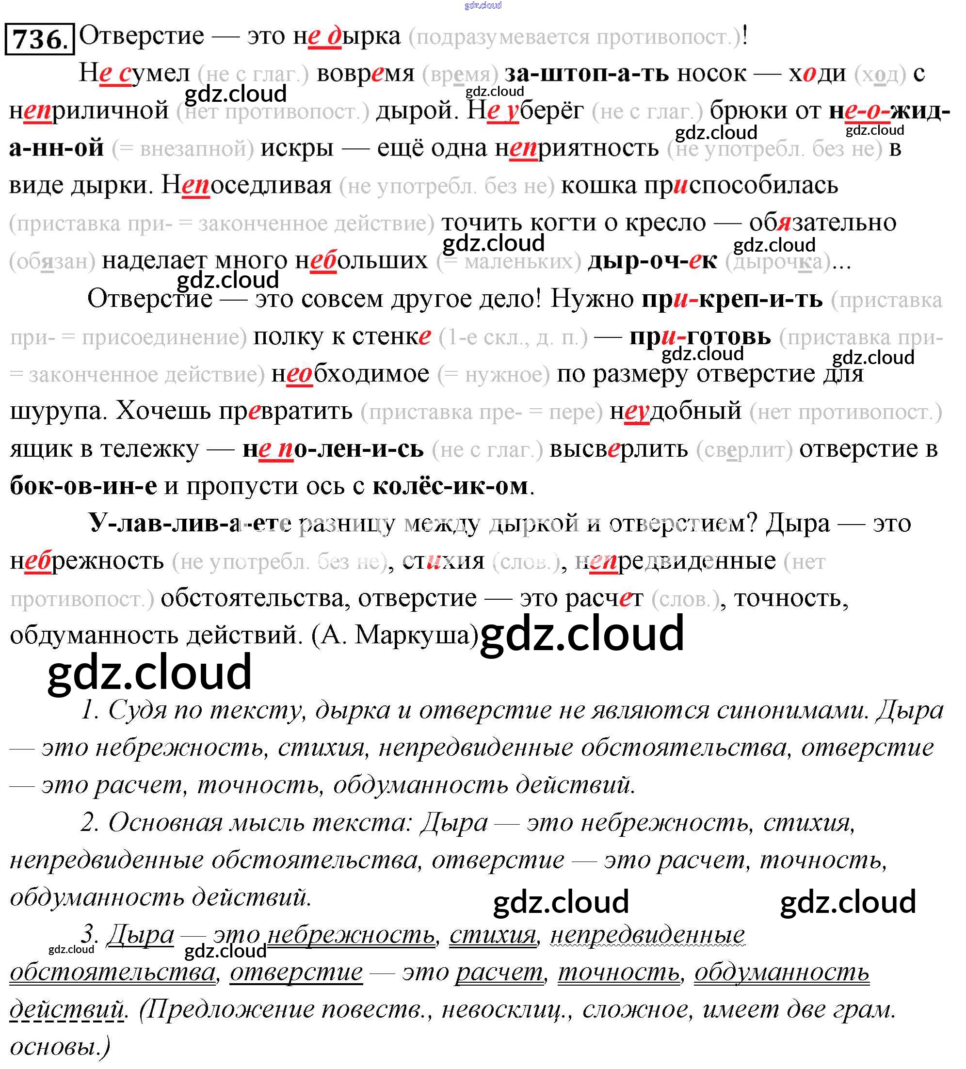 Ответ на задание 736 Учебник Русский язык за 6 (шестой) класс Львова, Львов 2013 Часть 1, 2 ФГОС онлайн и без номера телефона.