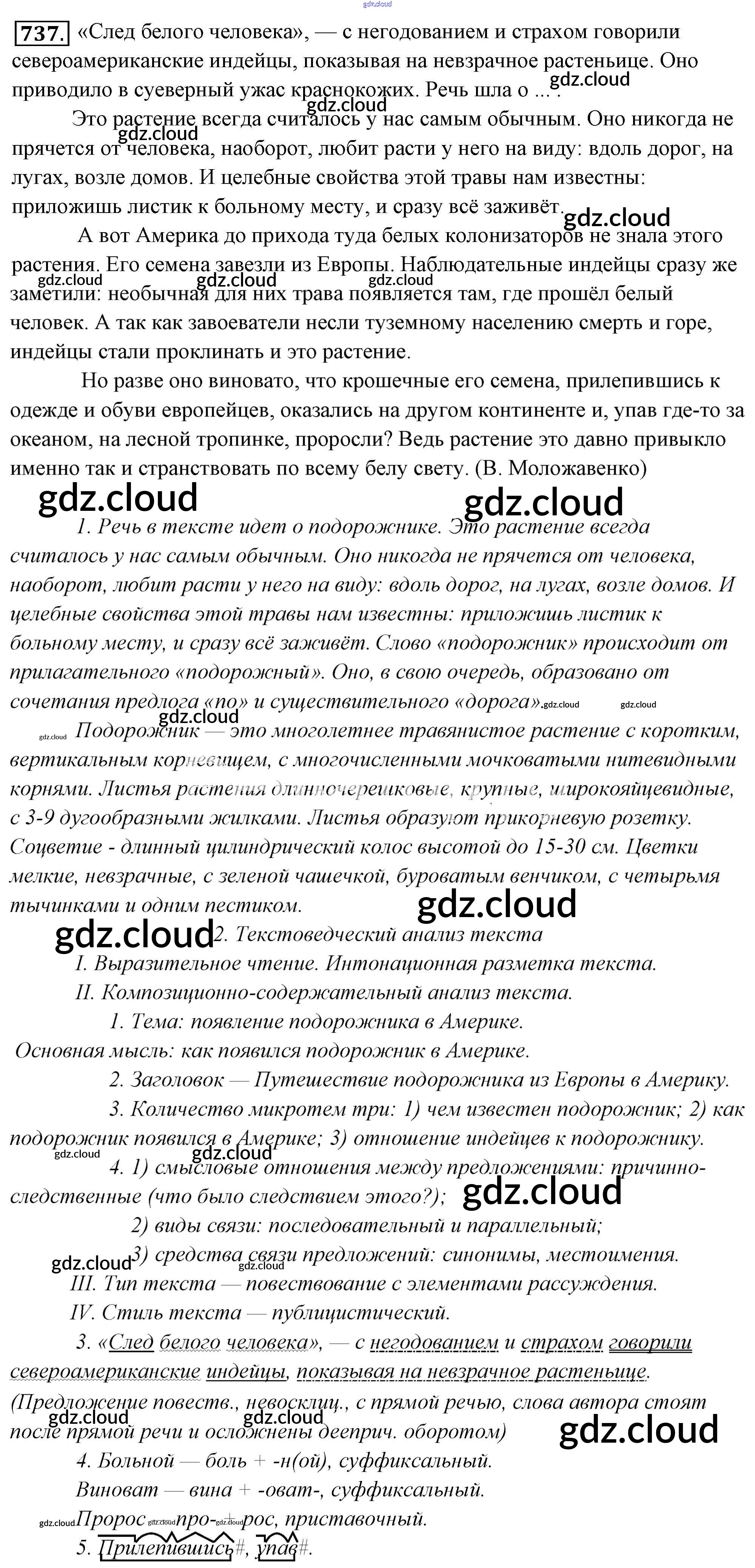 Ответ на задание 737 Учебник Русский язык за 6 (шестой) класс Львова, Львов 2013 Часть 1, 2 ФГОС онлайн и без номера телефона.