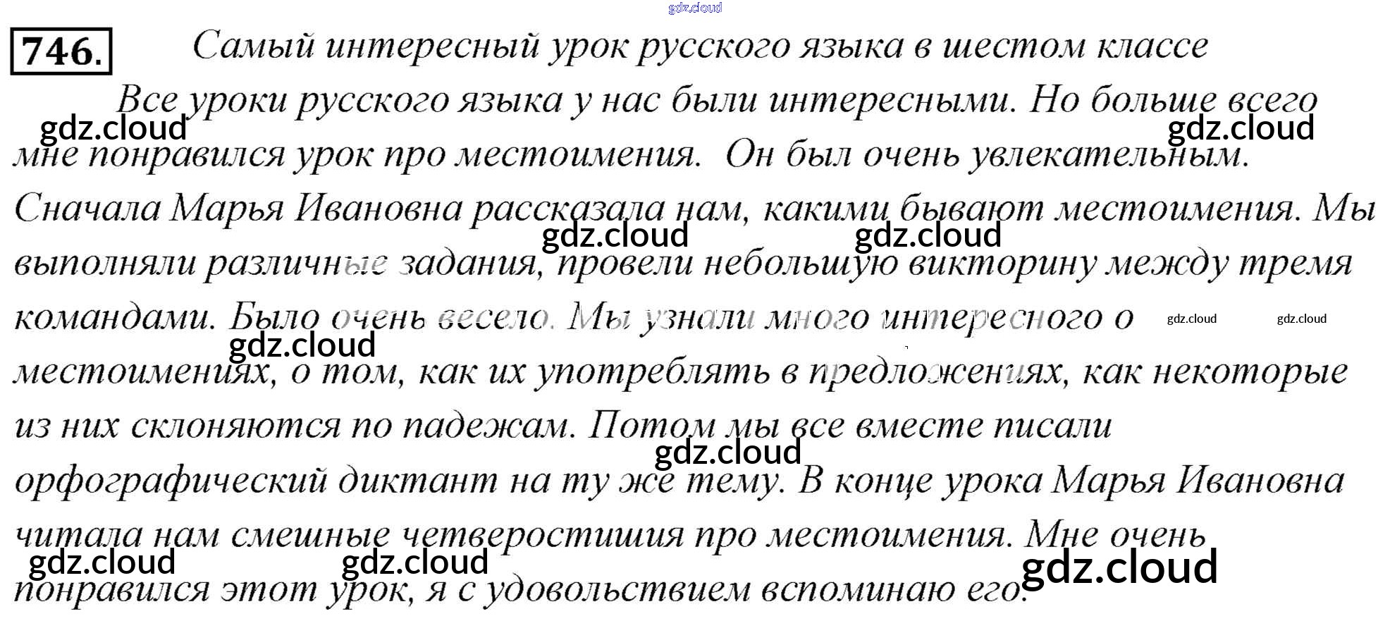 Ответ на задание 746 Учебник Русский язык за 6 (шестой) класс Львова, Львов 2013 Часть 1, 2 ФГОС онлайн и без номера телефона.