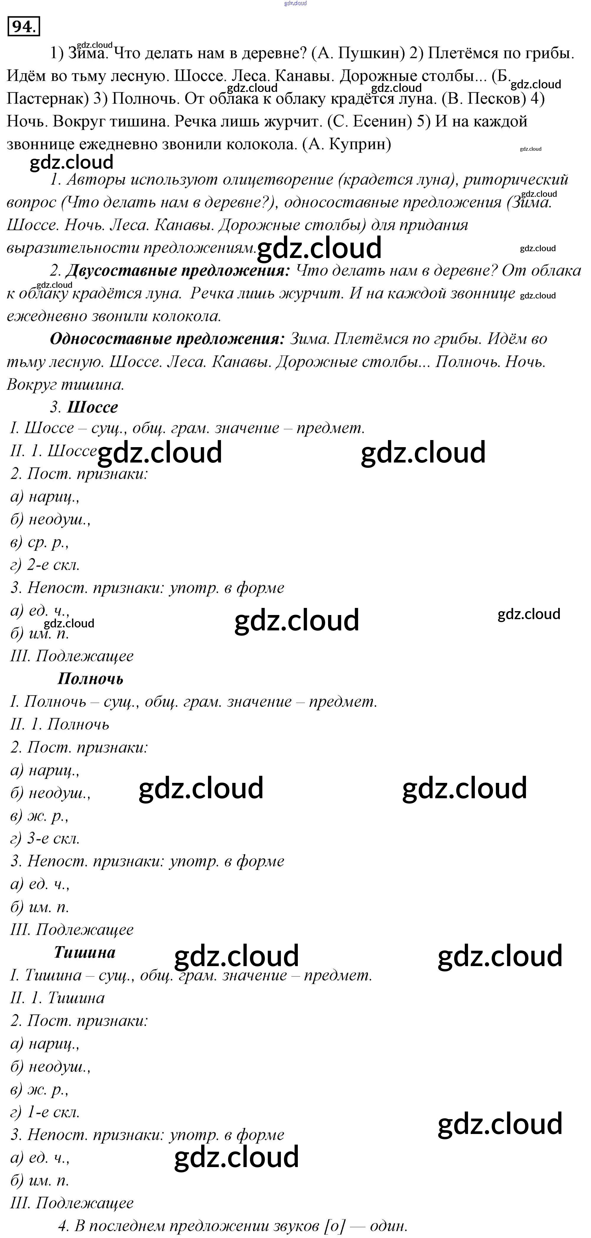 Ответ на задание 94 Учебник Русский язык за 6 (шестой) класс Львова, Львов 2013 Часть 1, 2 ФГОС онлайн и без номера телефона.