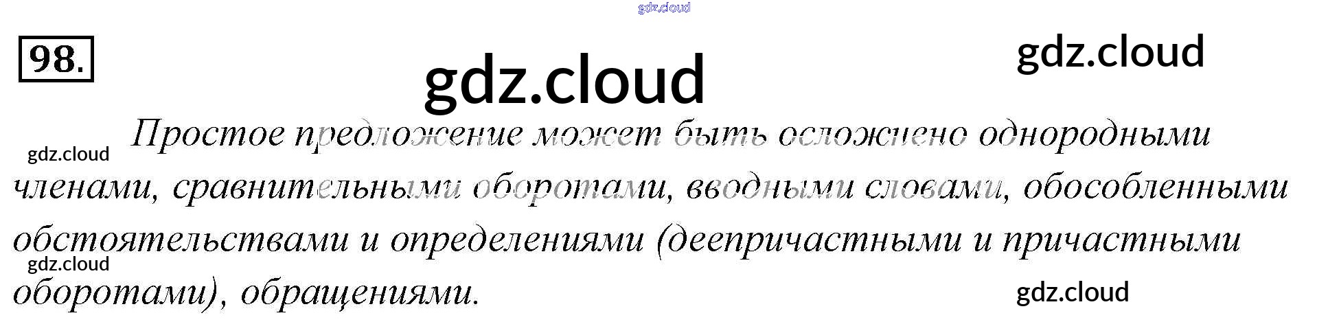 Ответ на задание 98 Учебник Русский язык за 6 (шестой) класс Львова, Львов 2013 Часть 1, 2 ФГОС онлайн и без номера телефона.