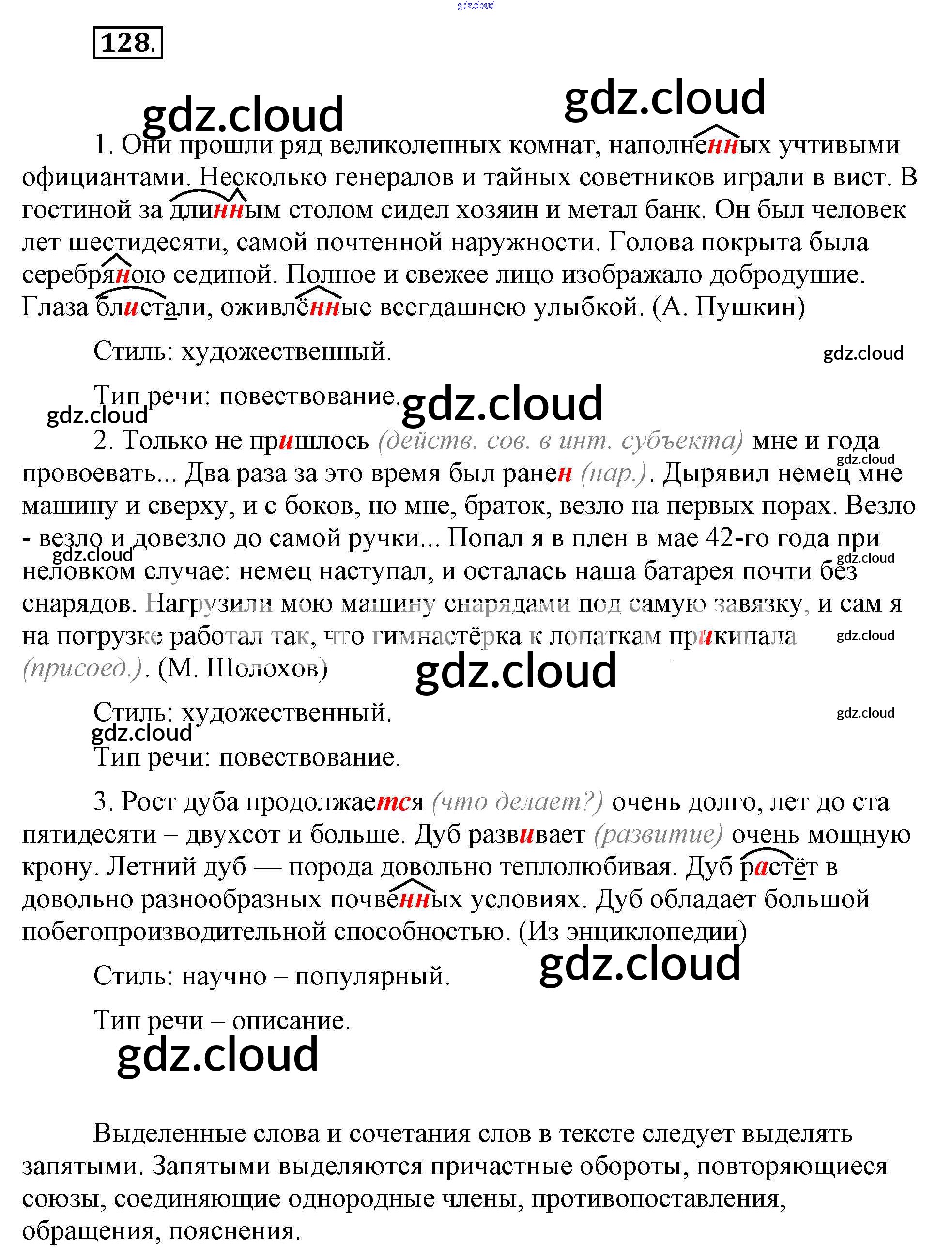 Ответ на задание 128 Рабочая тетрадь Русский язык за 7 (седьмой) класс Ефремова, Баранова, Ладыженская, Тростенцова УМК 2017, 2022