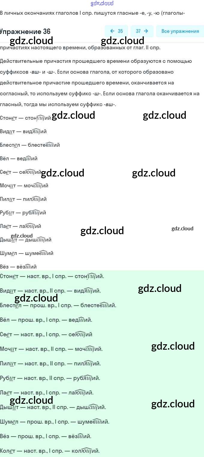 Ответ на задание 36 Рабочая тетрадь Русский язык за 7 (седьмой) класс Ефремова, Баранова, Ладыженская, Тростенцова УМК 2017, 2022