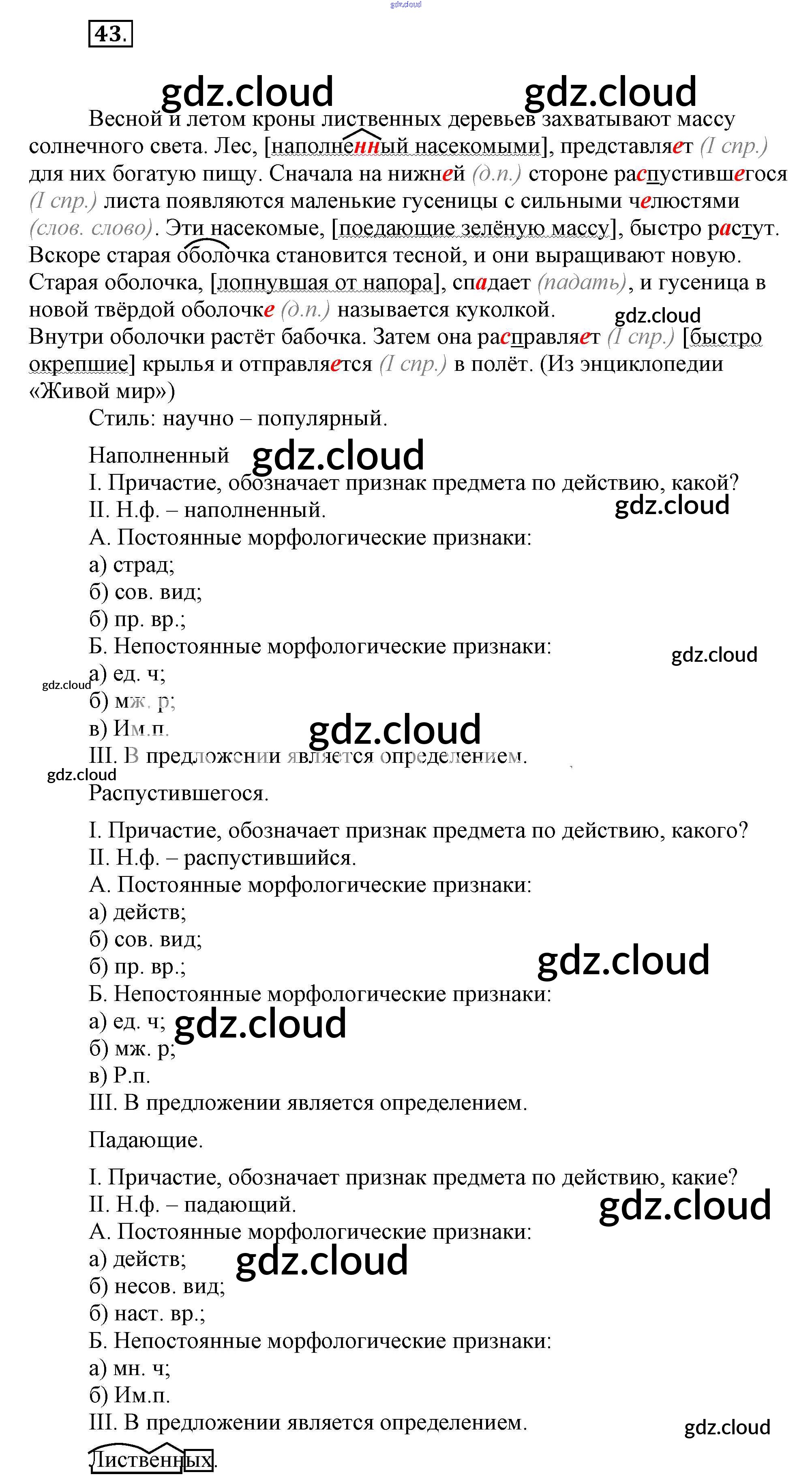 Ответ на задание 43 Рабочая тетрадь Русский язык за 7 (седьмой) класс Ефремова, Баранова, Ладыженская, Тростенцова УМК 2017, 2022