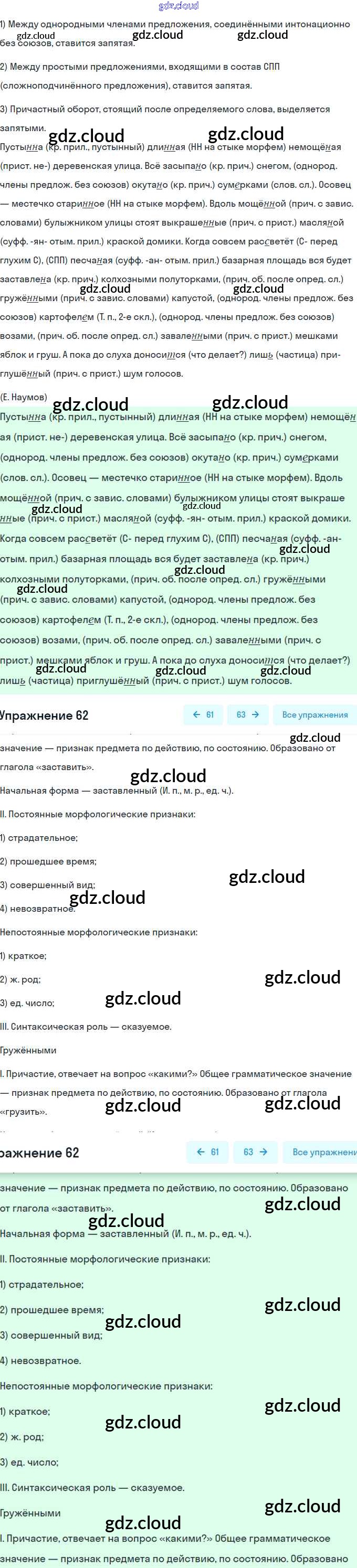 Ответ на задание 62 Рабочая тетрадь Русский язык за 7 (седьмой) класс Ефремова, Баранова, Ладыженская, Тростенцова УМК 2017, 2022