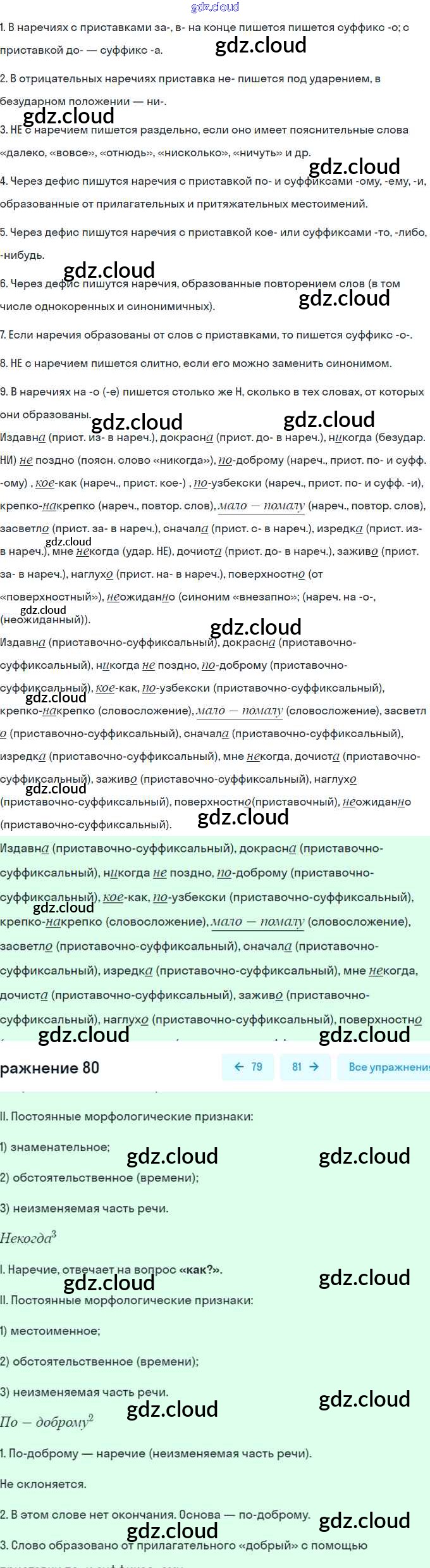 Ответ на задание 80 Рабочая тетрадь Русский язык за 7 (седьмой) класс Ефремова, Баранова, Ладыженская, Тростенцова УМК 2017, 2022