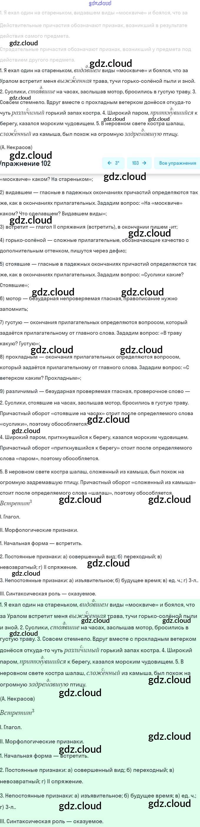 Ответ на задание 102 Учебник Русский язык за 7 (седьмой) класс Баранов, Ладыженская, Тростенцова 2015, 2022