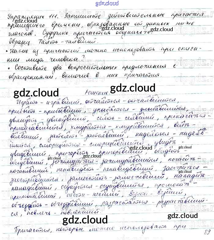 Ответ на задание 111 Учебник Русский язык за 7 (седьмой) класс Баранов, Ладыженская, Тростенцова УМК 2015