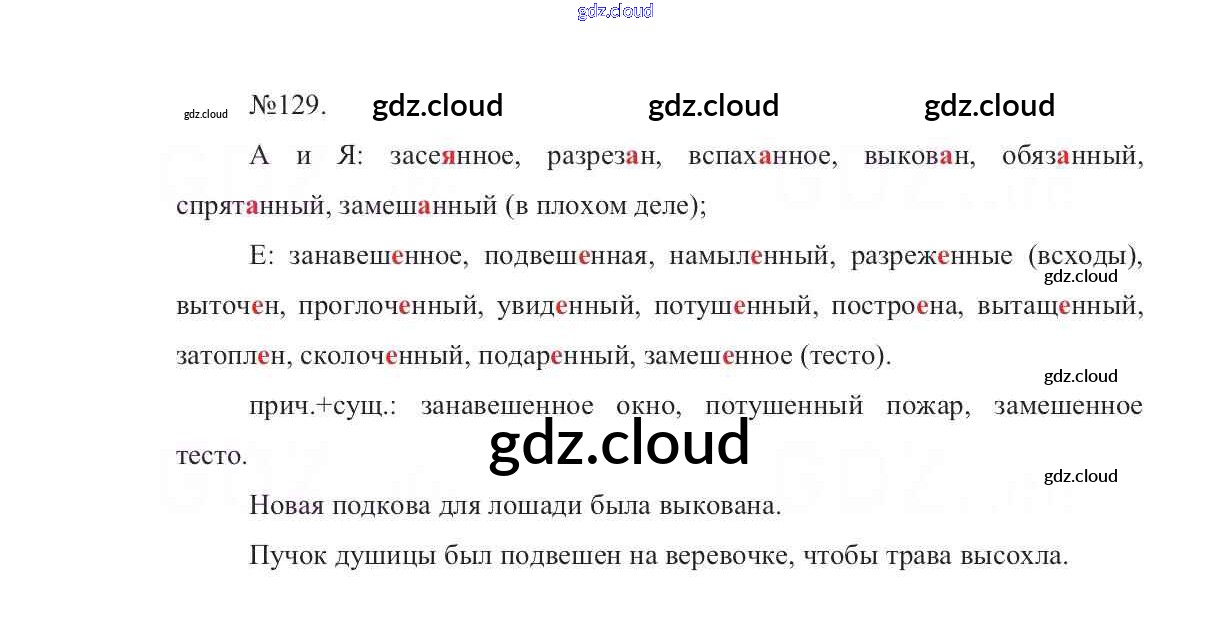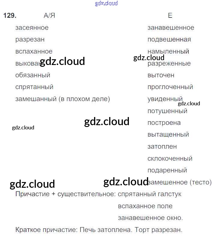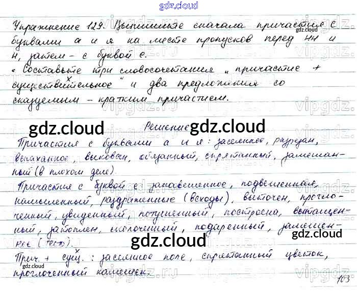 Ответ на задание 129 Учебник Русский язык за 7 (седьмой) класс Баранов, Ладыженская, Тростенцова УМК 2015