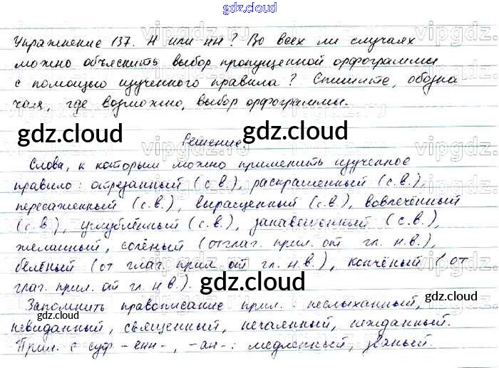 Ответ на задание 137 Учебник Русский язык за 7 (седьмой) класс Баранов, Ладыженская, Тростенцова УМК 2015