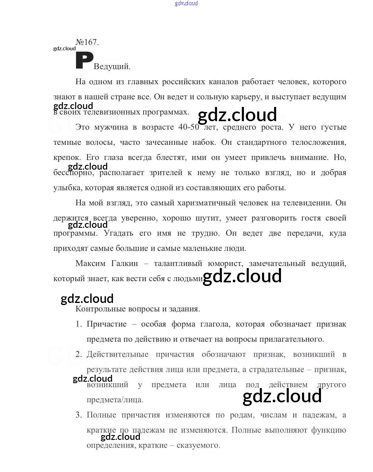 Ответ на задание 167 Учебник Русский язык за 7 (седьмой) класс Баранов, Ладыженская, Тростенцова УМК 2015