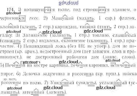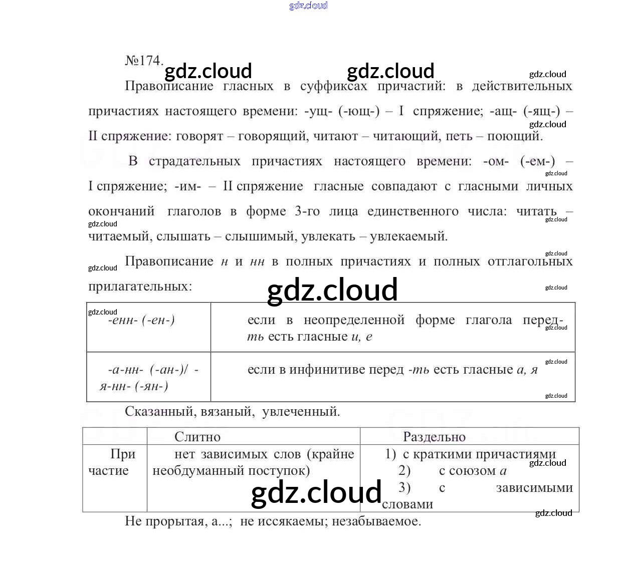 Ответ на задание 174 Учебник Русский язык за 7 (седьмой) класс Баранов, Ладыженская, Тростенцова УМК 2015