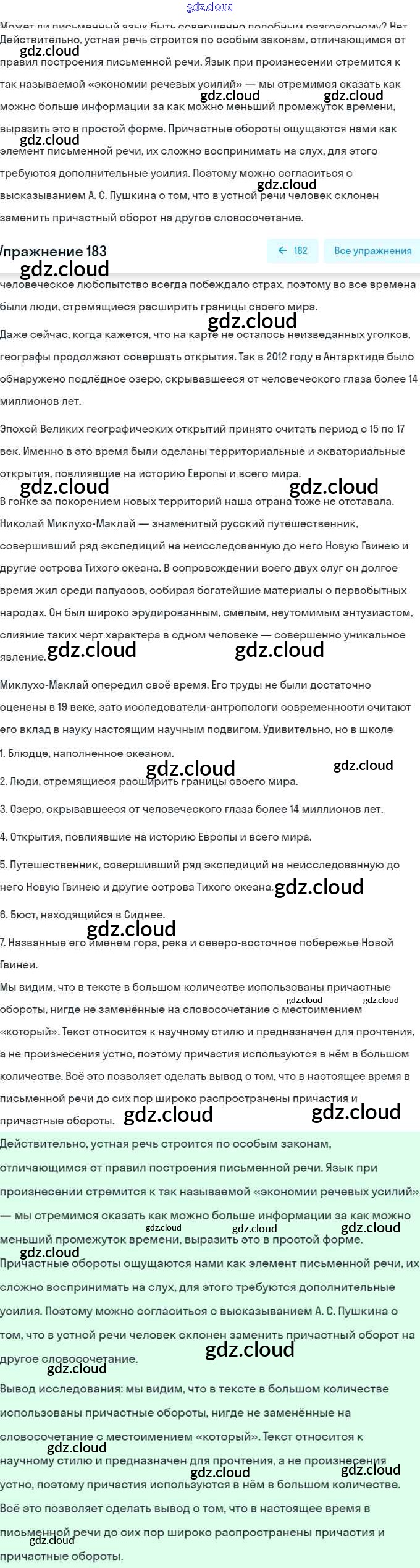 Ответ на задание 183 Учебник Русский язык за 7 (седьмой) класс Баранов, Ладыженская, Тростенцова 2015, 2022