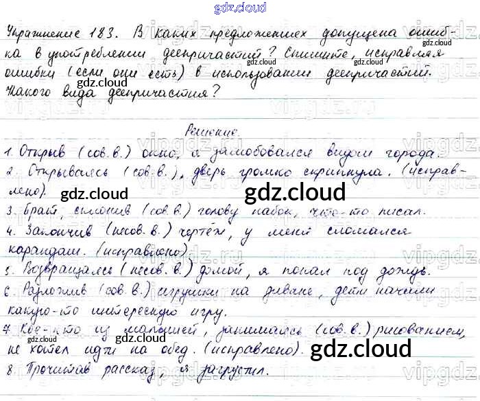 Ответ на задание 183 Учебник Русский язык за 7 (седьмой) класс Баранов, Ладыженская, Тростенцова УМК 2015