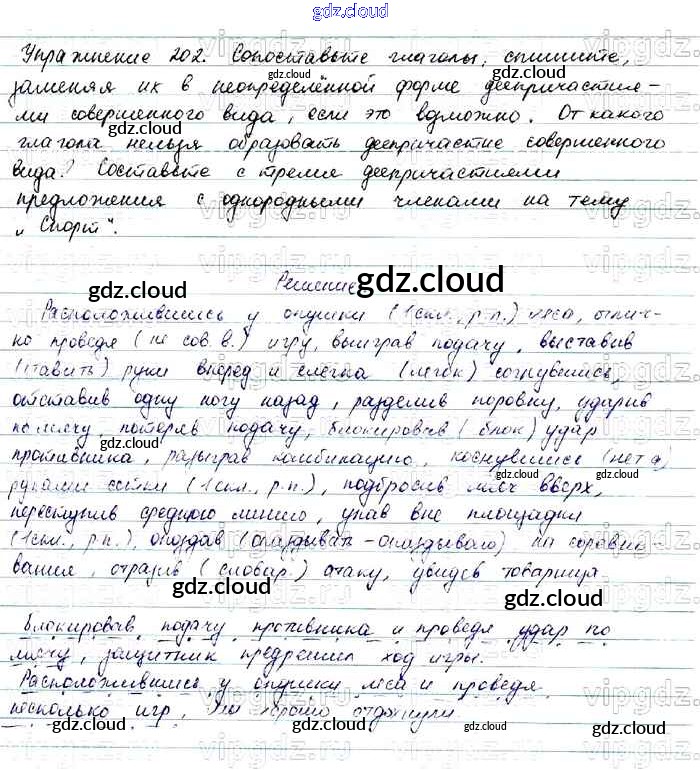 Ответ на задание 202 Учебник Русский язык за 7 (седьмой) класс Баранов, Ладыженская, Тростенцова УМК 2015