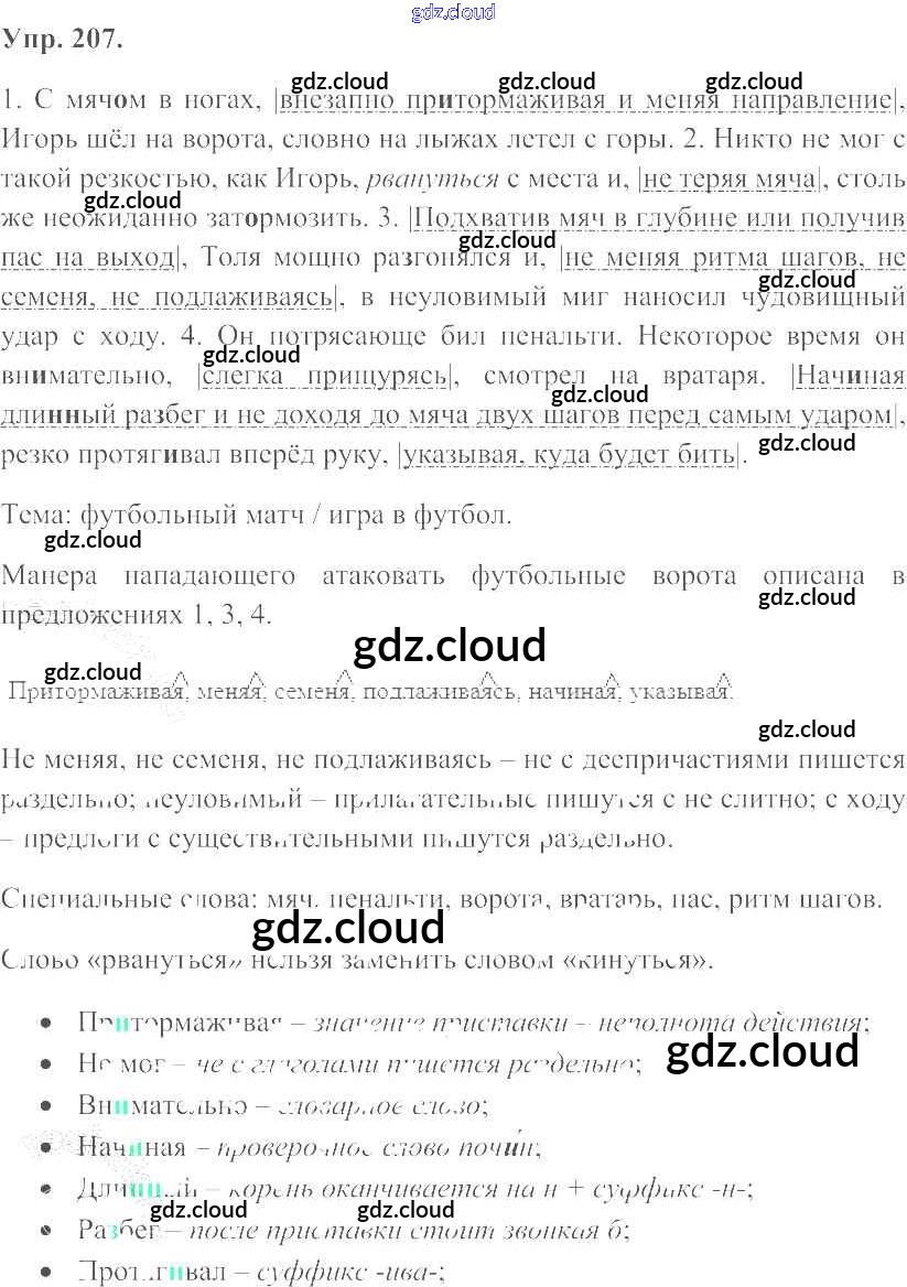 Ответ на задание 207 Учебник Русский язык за 7 (седьмой) класс Баранов, Ладыженская, Тростенцова 2015, 2022