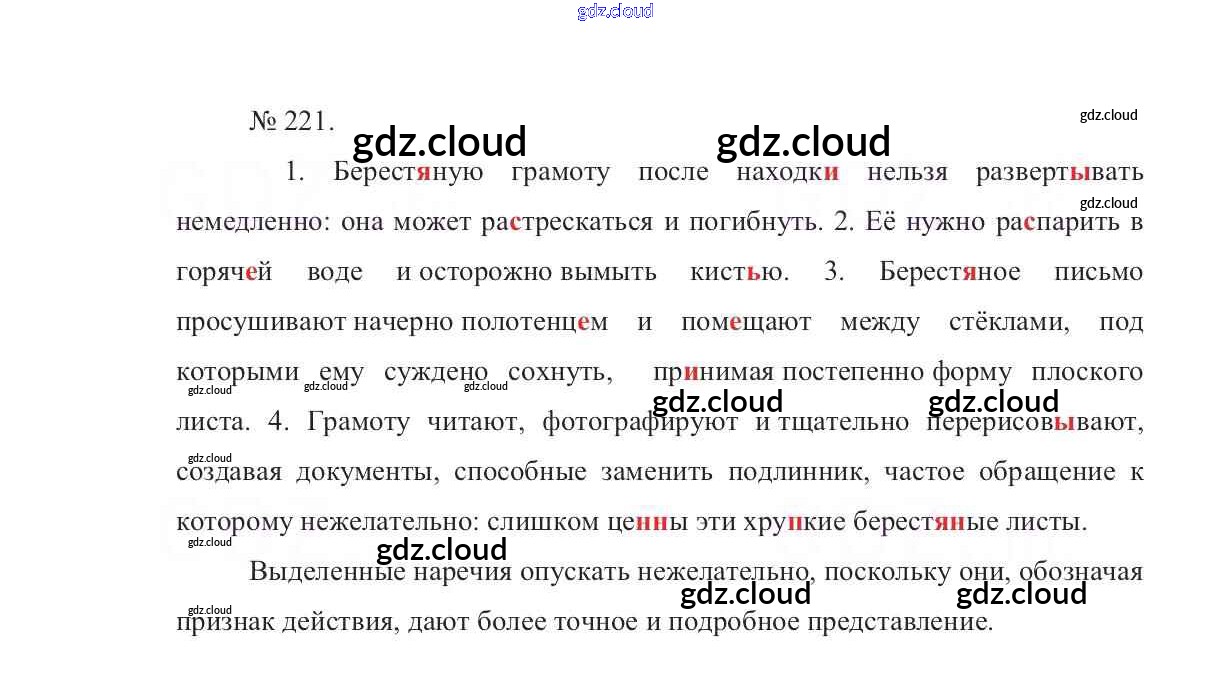 Ответ на задание 221 Учебник Русский язык за 7 (седьмой) класс Баранов, Ладыженская, Тростенцова УМК 2015