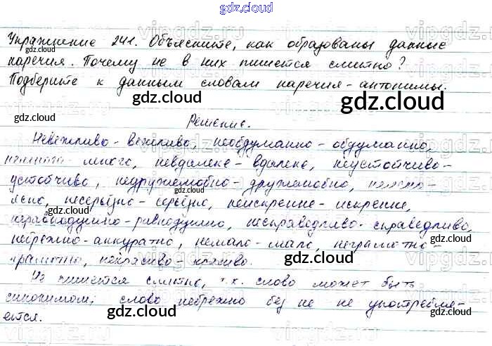 Ответ на задание 241 Учебник Русский язык за 7 (седьмой) класс Баранов, Ладыженская, Тростенцова УМК 2015