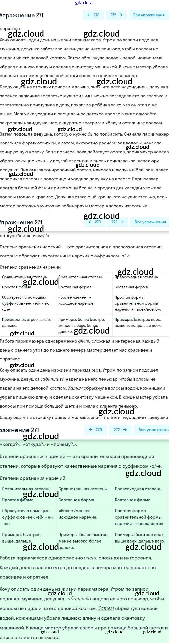 Ответ на задание 271 Учебник Русский язык за 7 (седьмой) класс Баранов, Ладыженская, Тростенцова 2015, 2022