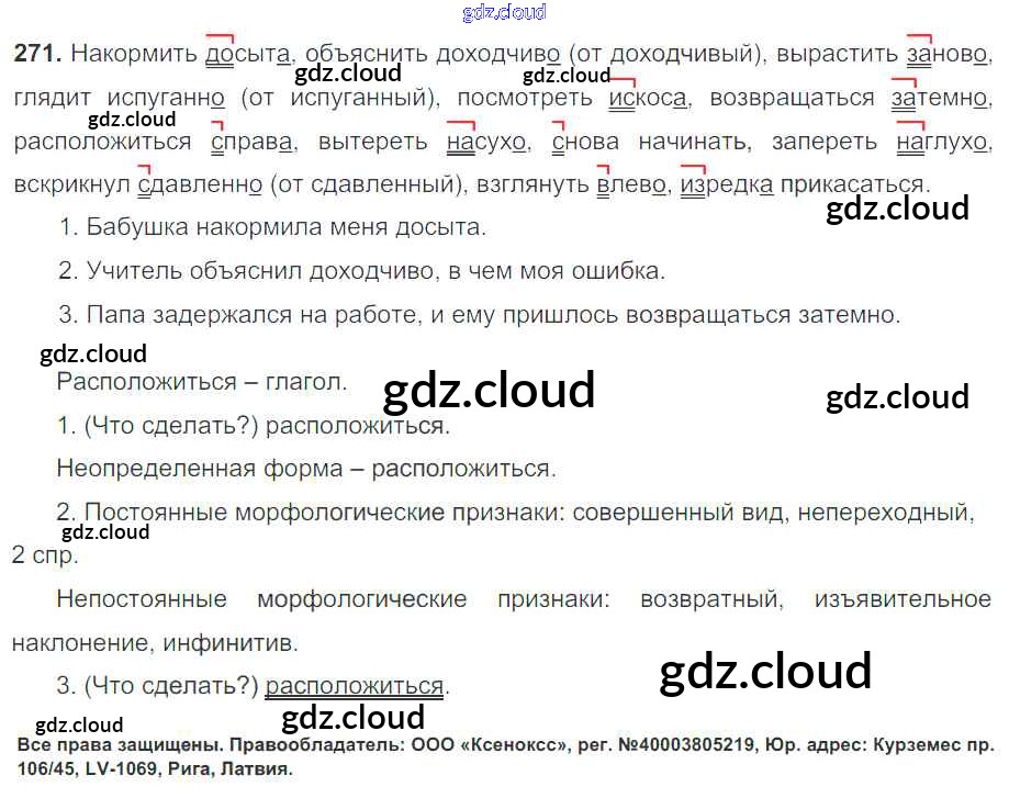 Ответ на задание 271 Учебник Русский язык за 7 (седьмой) класс Баранов, Ладыженская, Тростенцова УМК 2015